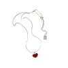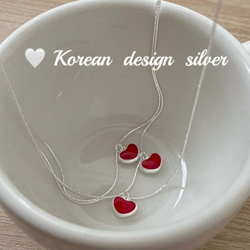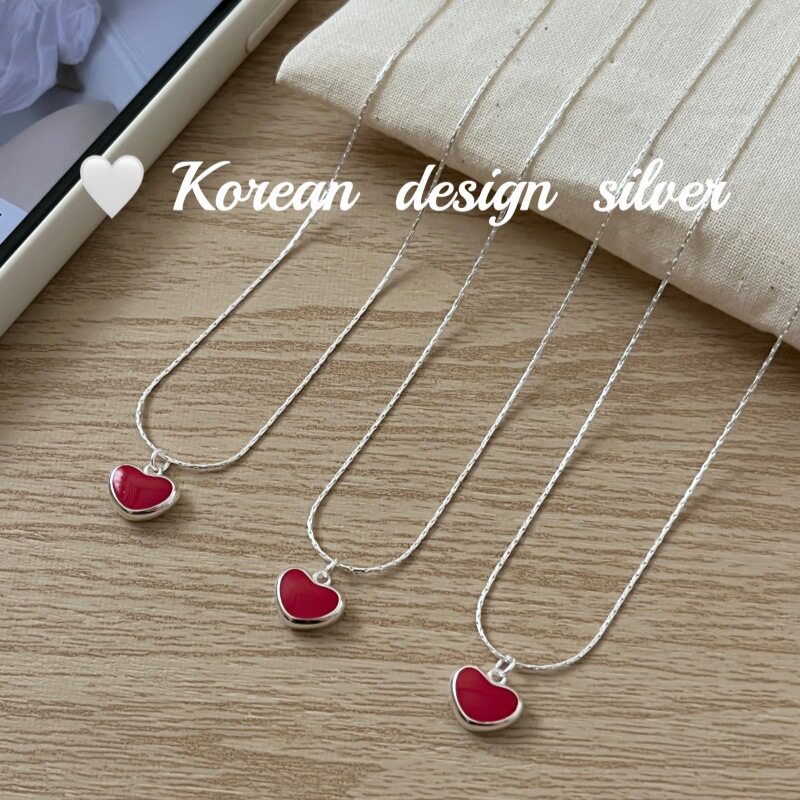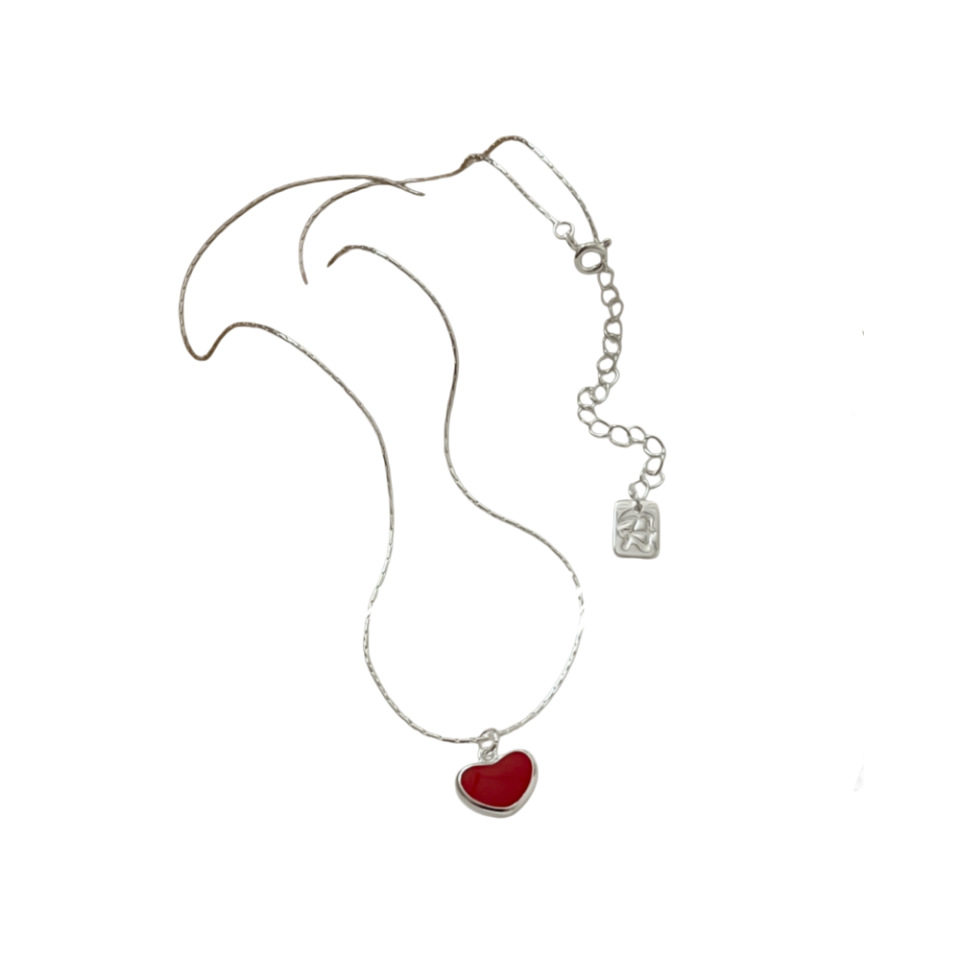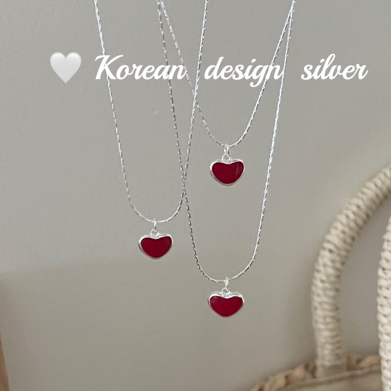 韩国东大门亮银饰品 S925纯银 红色滴胶爱心项链气质显白优雅款