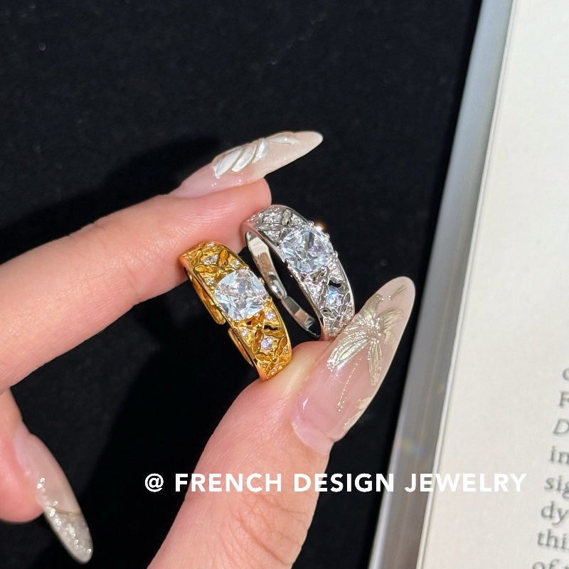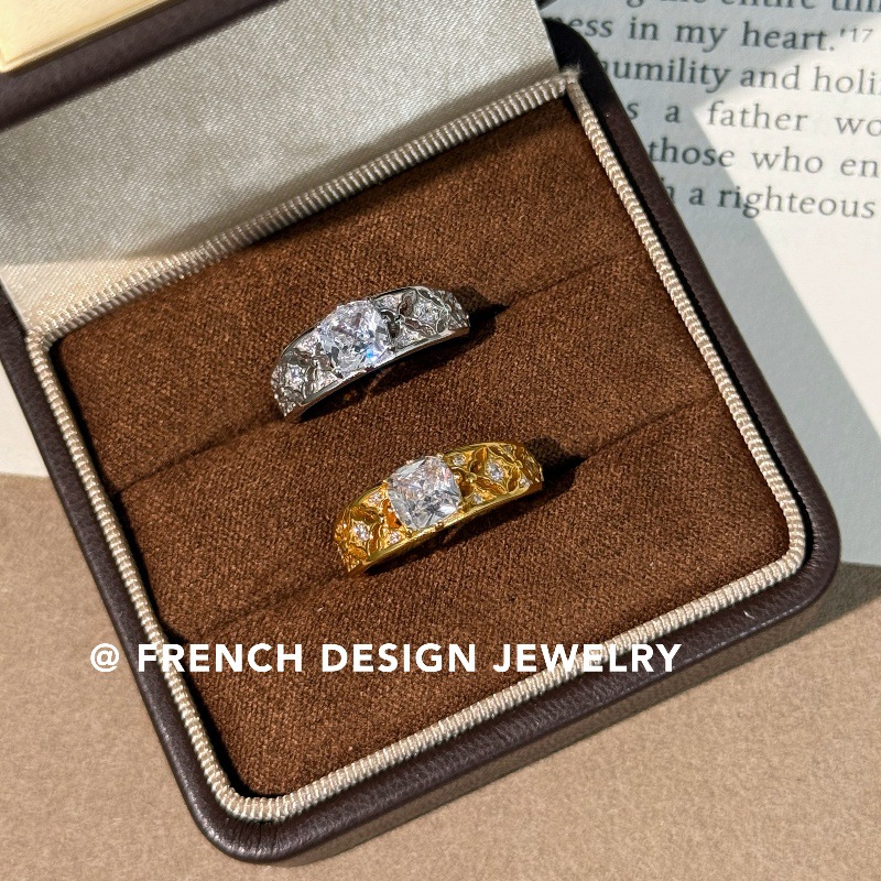 超美法式轻奢镶钻锆石戒指S925纯银优雅食指戒浪漫温柔满钻百搭款