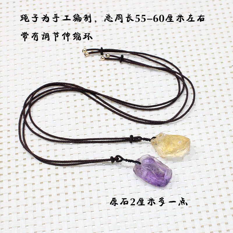 如鸿天然水晶原石吊坠紫黄矿物晶体男女款项链锁骨链饰品宝石挂件