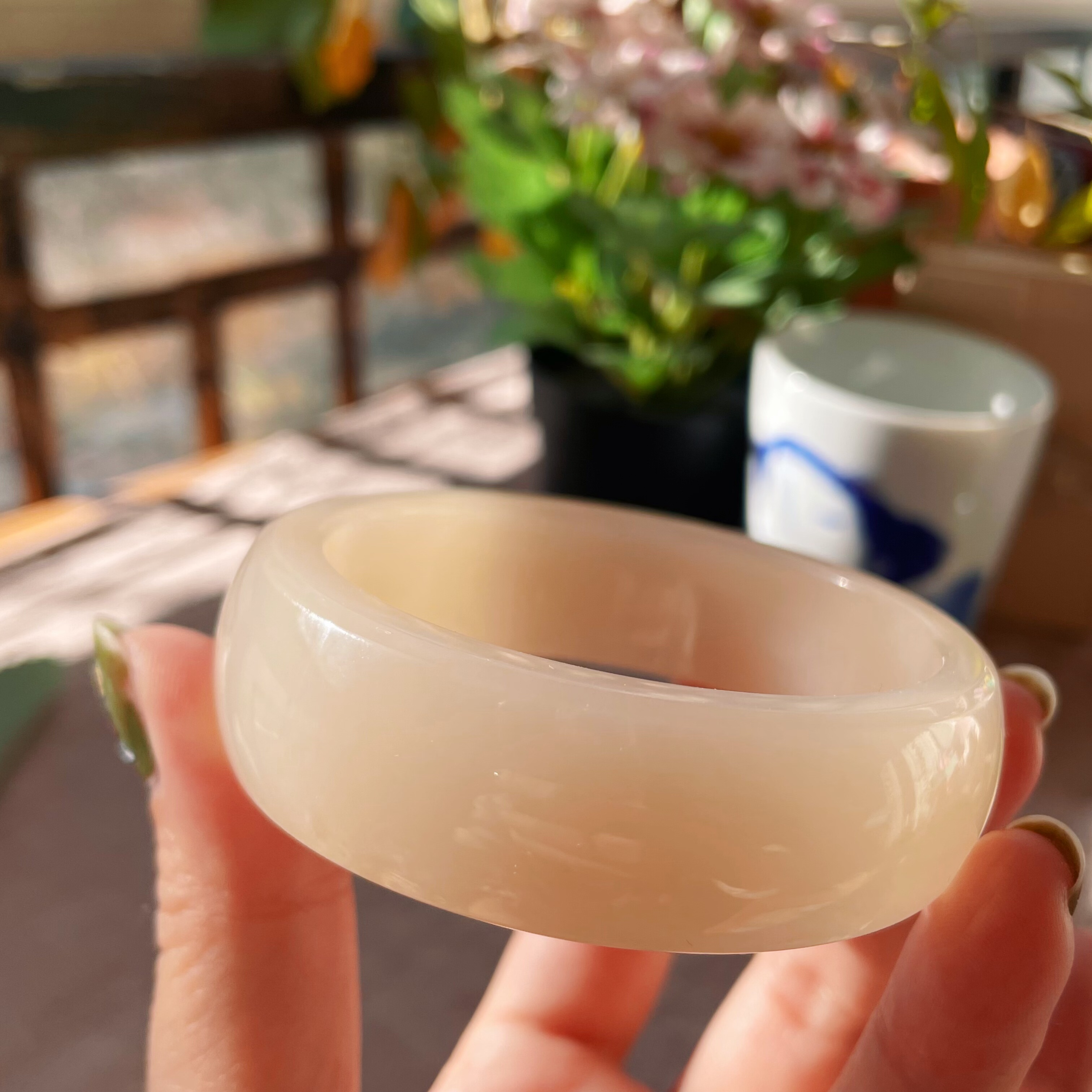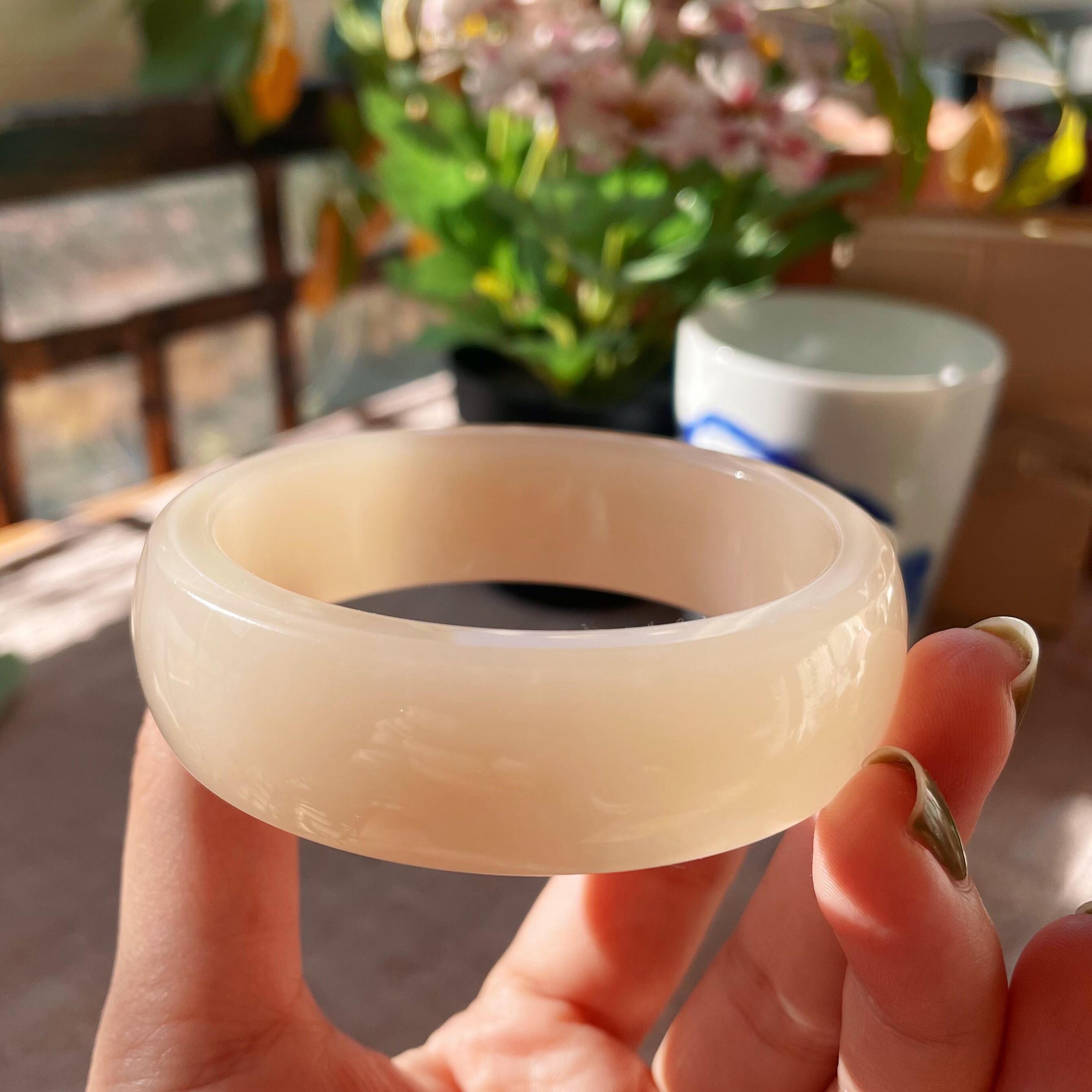 「雅布藤」粉黛和田玉手镯。宽厚版老矿料。圈口57.5mm浓郁粉色