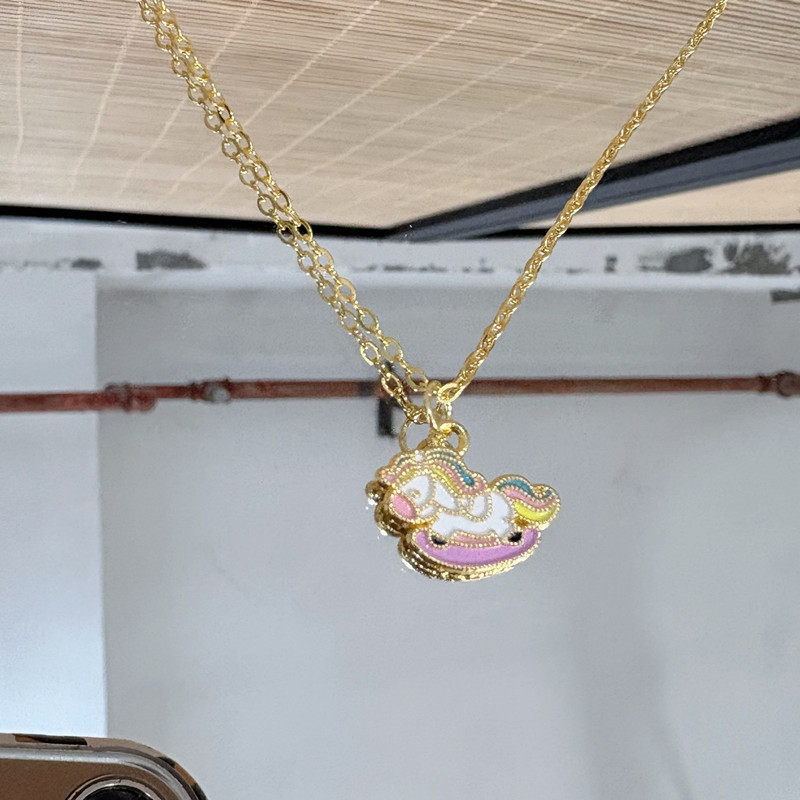 彩色摇摇欢乐木马吊坠项链时尚百搭设计送闺蜜女友礼物