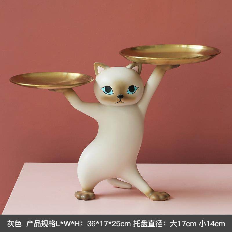 创意卡通沙雕妖娆猫摆件客厅玄关钥匙收纳桌面托盘乔迁新居礼物