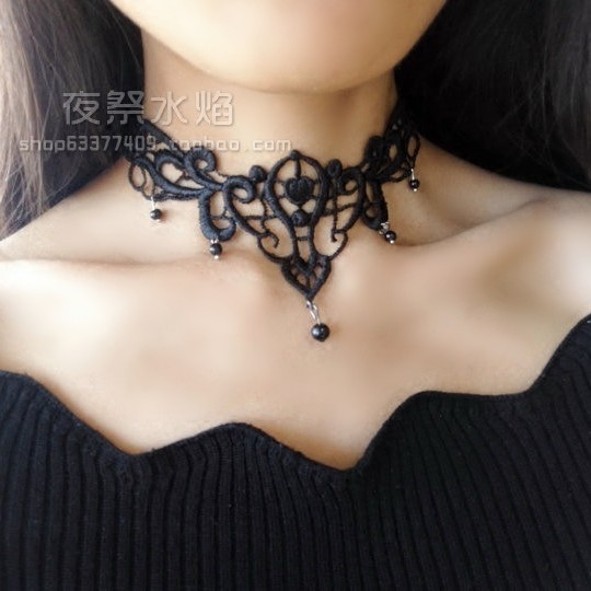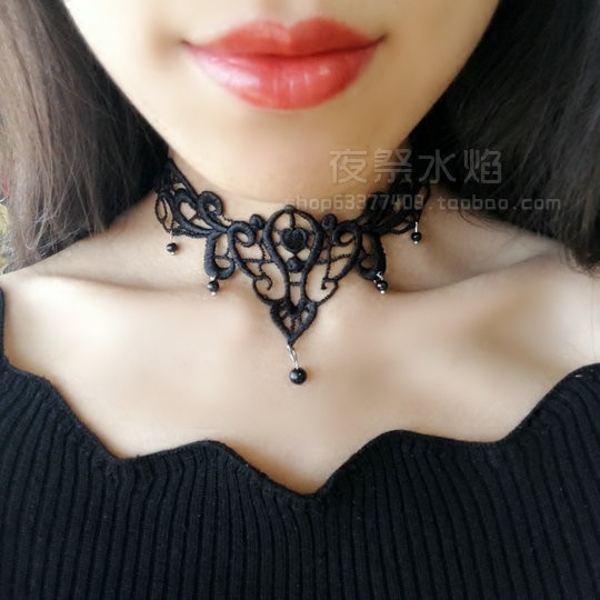『碎落』哥特黑色高贵女王简约复古镂空遮疤痕颈纹宽蕾丝锁骨项链