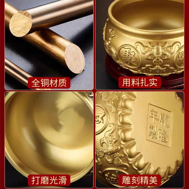 纯铜聚宝盆摆件招财聚财实心家用存钱罐黄铜米缸店铺公司开业礼品