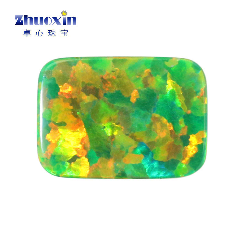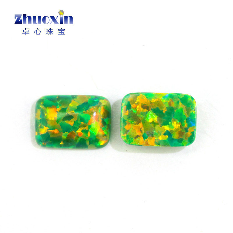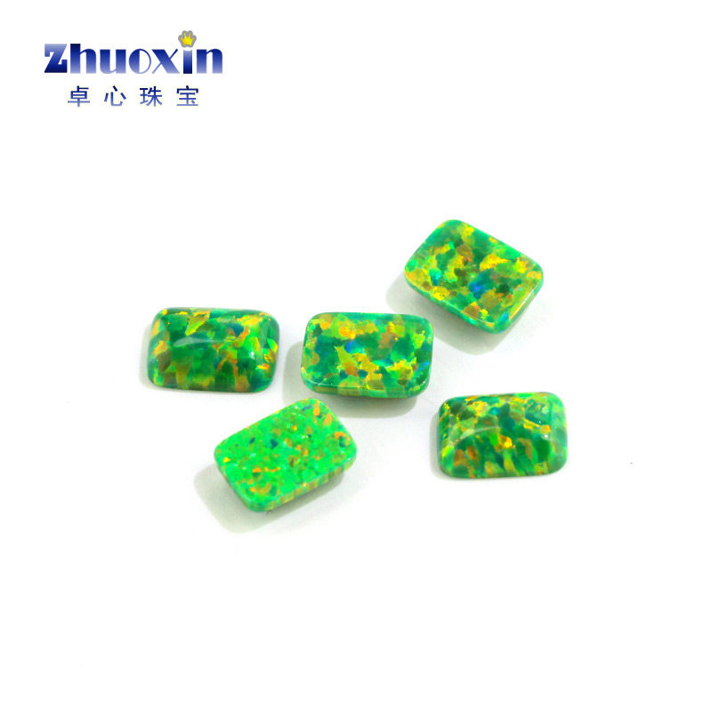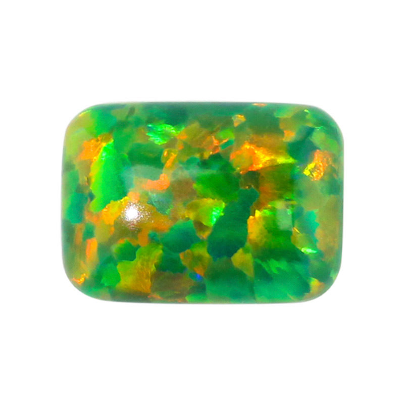 草绿色小八角 长方倒角合成澳宝裸石OPAL 平底素面欧泊石OP21