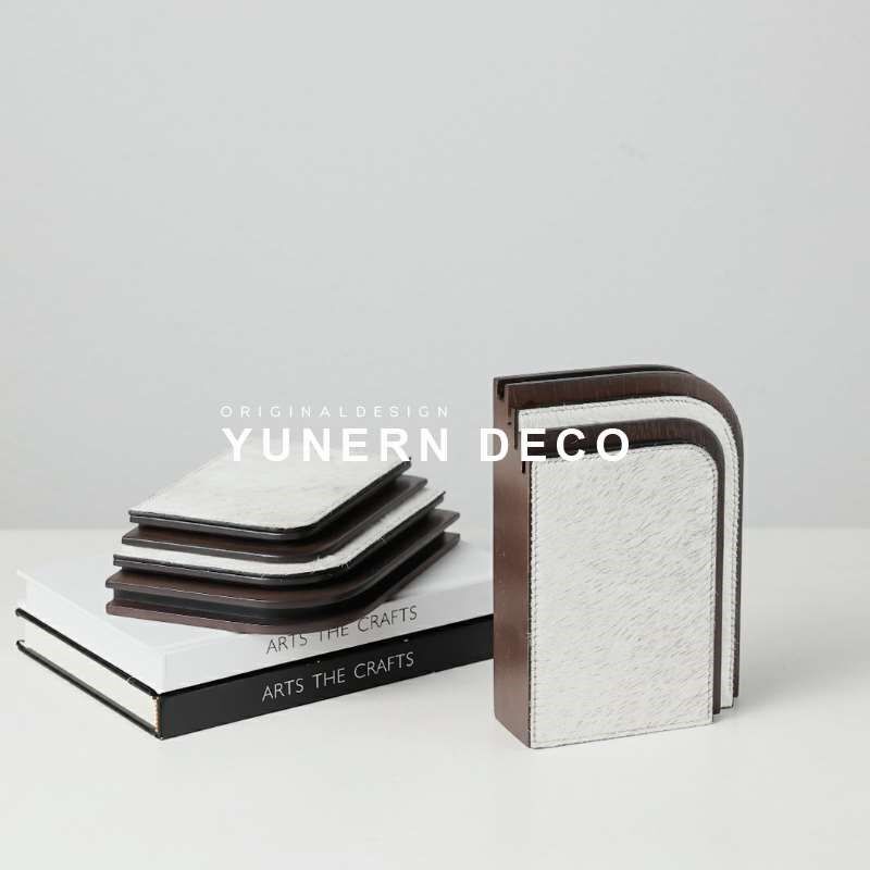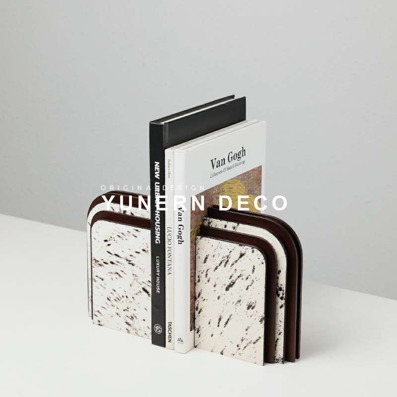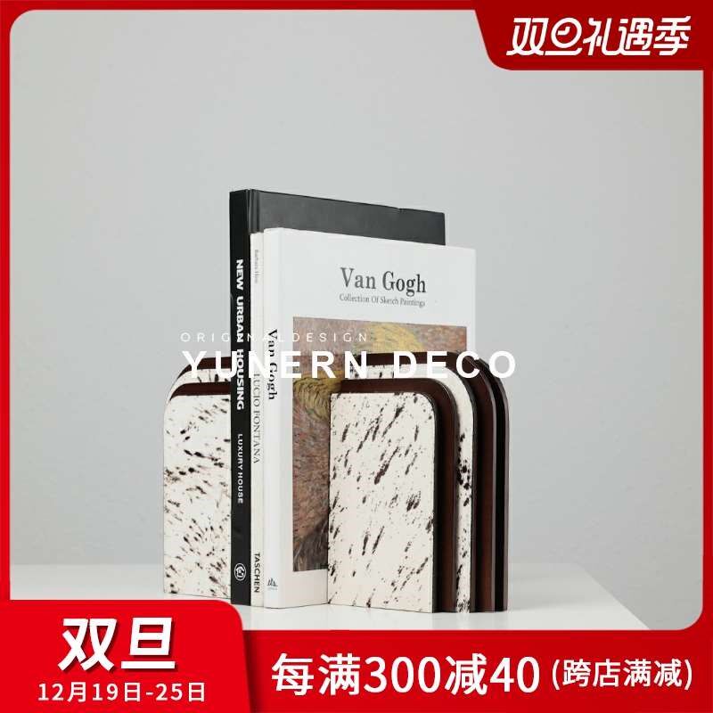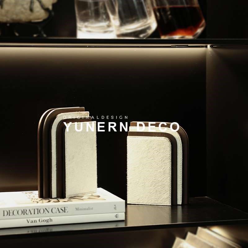 轻奢样板房间高级感马毛装饰书挡摆件客厅玄关柜书房门型艺术书靠