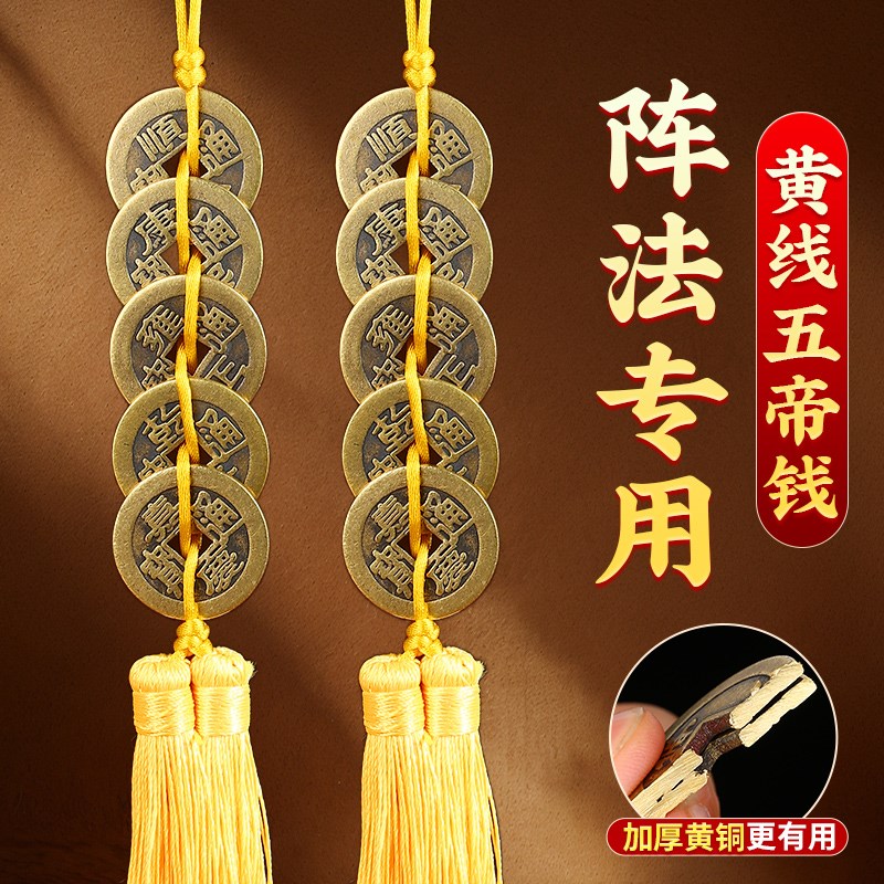 六帝钱黄绳全铜加厚真品挂v件门对门五六七八九十帝钱随身携带铜