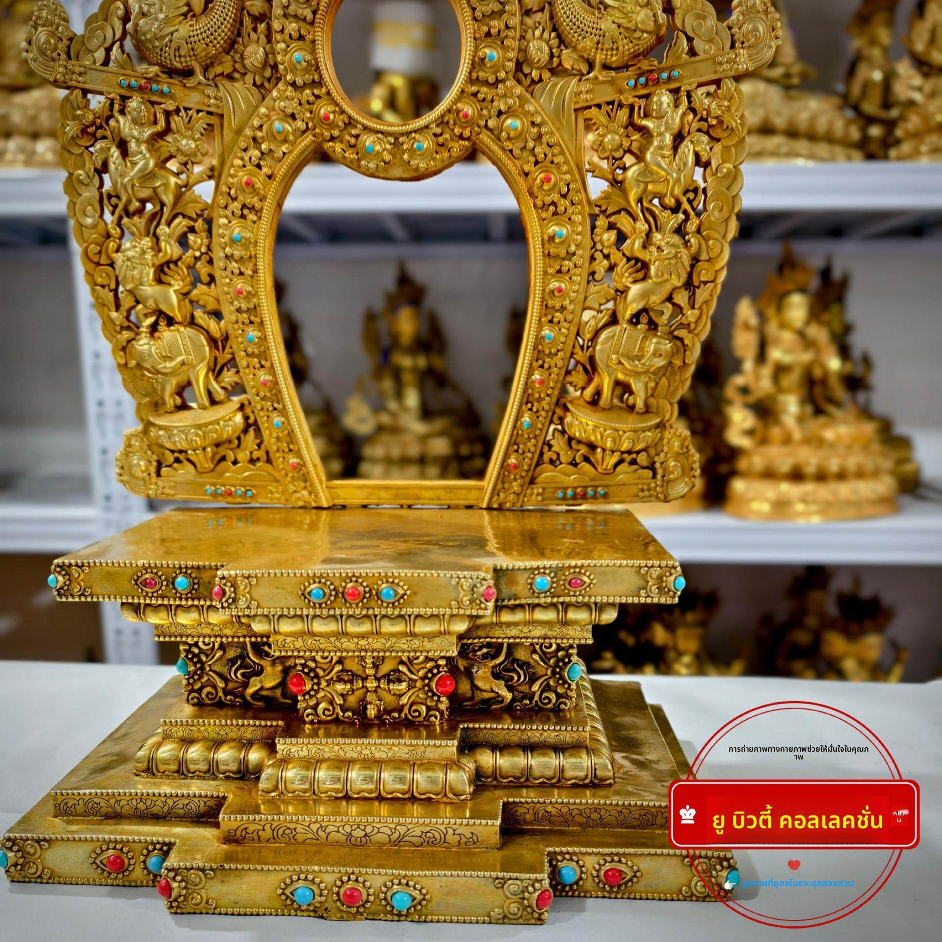 藏传佛像法座10寸佛像金刚底座密宗纯铜鎏金56cm高铜像佛台镶宝石