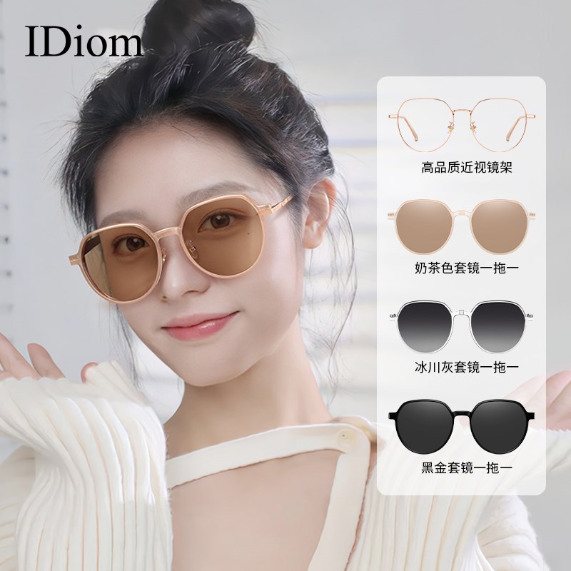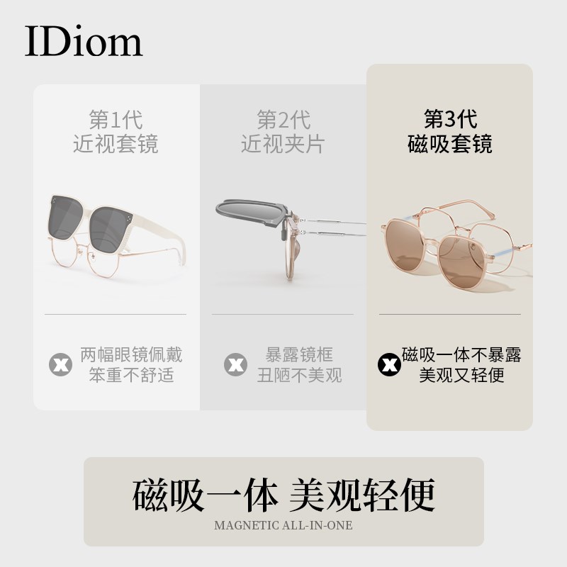 奶茶色磁吸套镜女款可配度数z级感偏光近视墨镜防晒太阳眼镜夹片