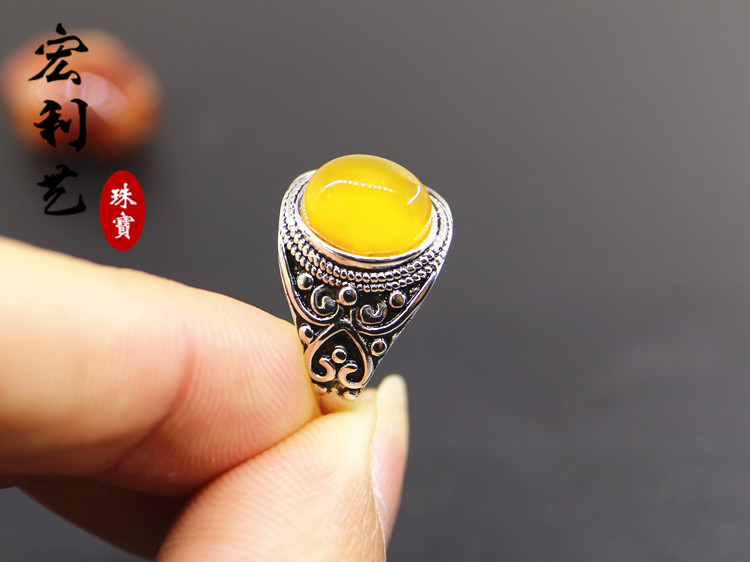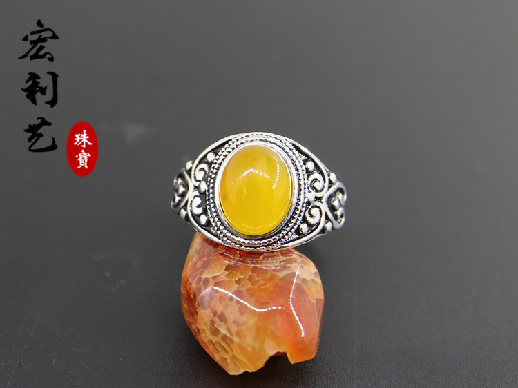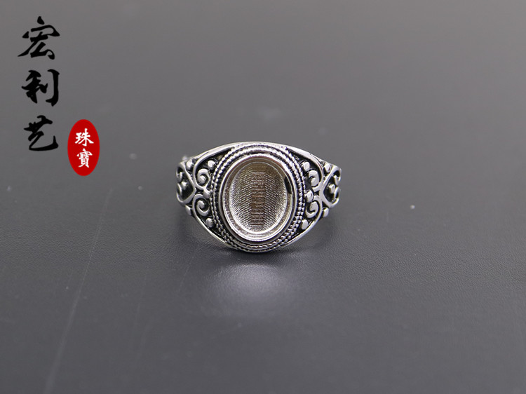 宏利S925纯银戒指空托 镶嵌新款松石8*10银托复旧蜜蜡琥珀女戒托