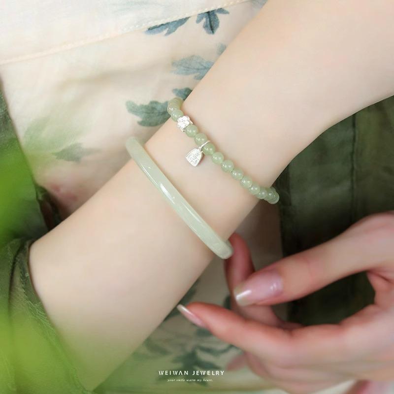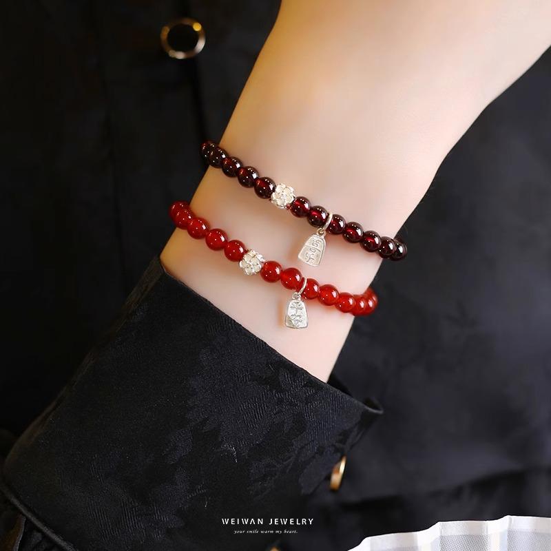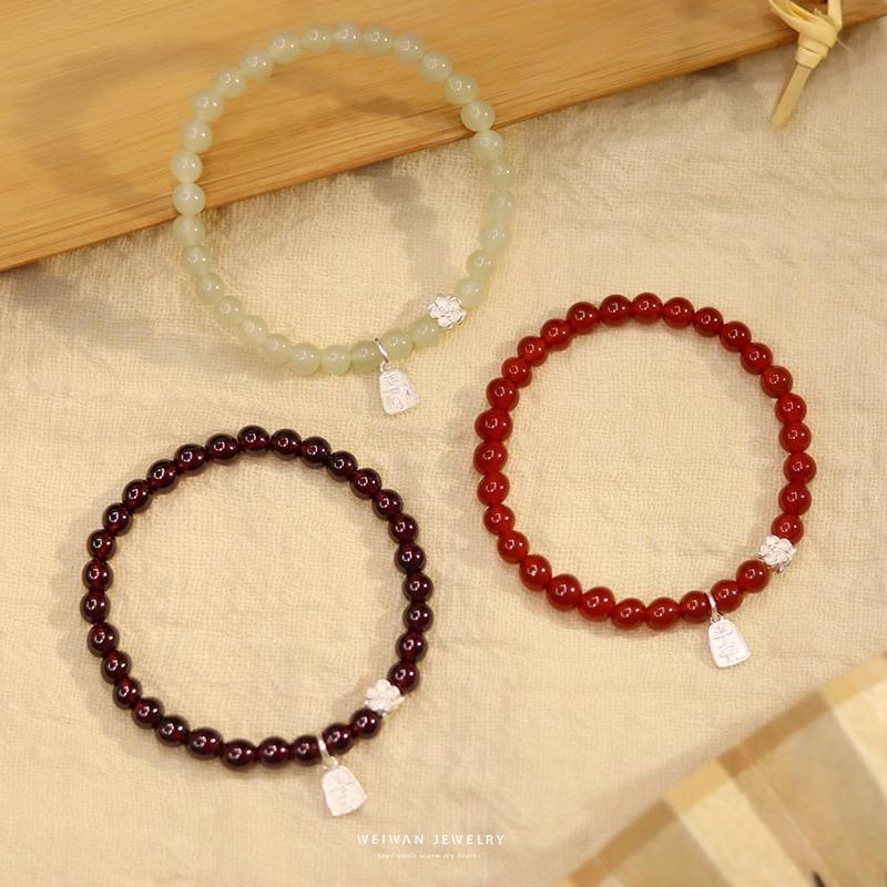 925纯银天然和田玉手链女款2024新款石榴石手串中式串珠小众礼物