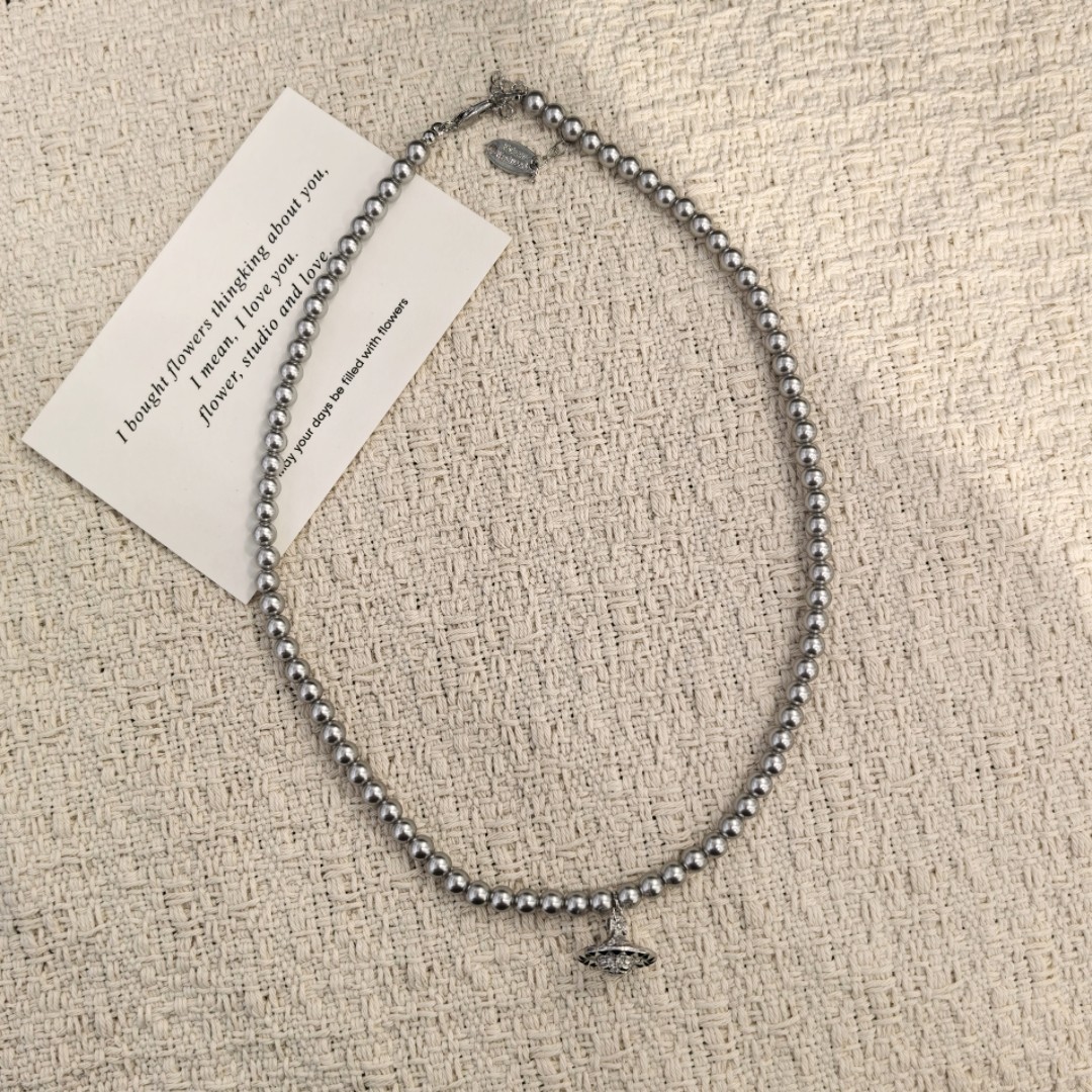 设计感法式复古灰色珍珠项链女个性时髦气质锁骨链高级感颈链百搭
