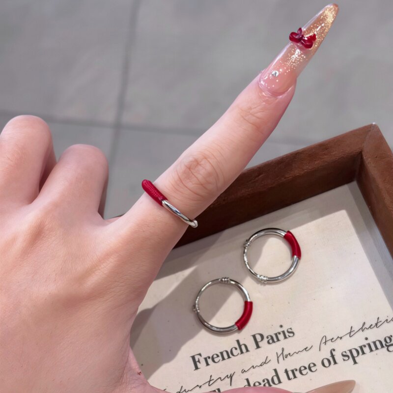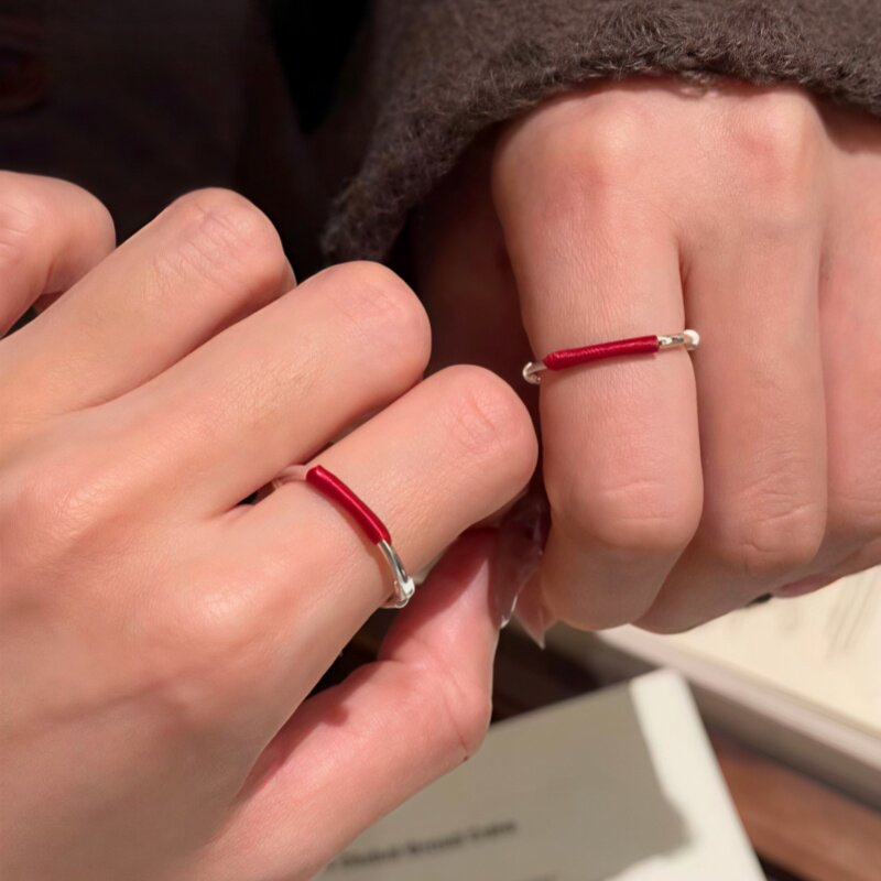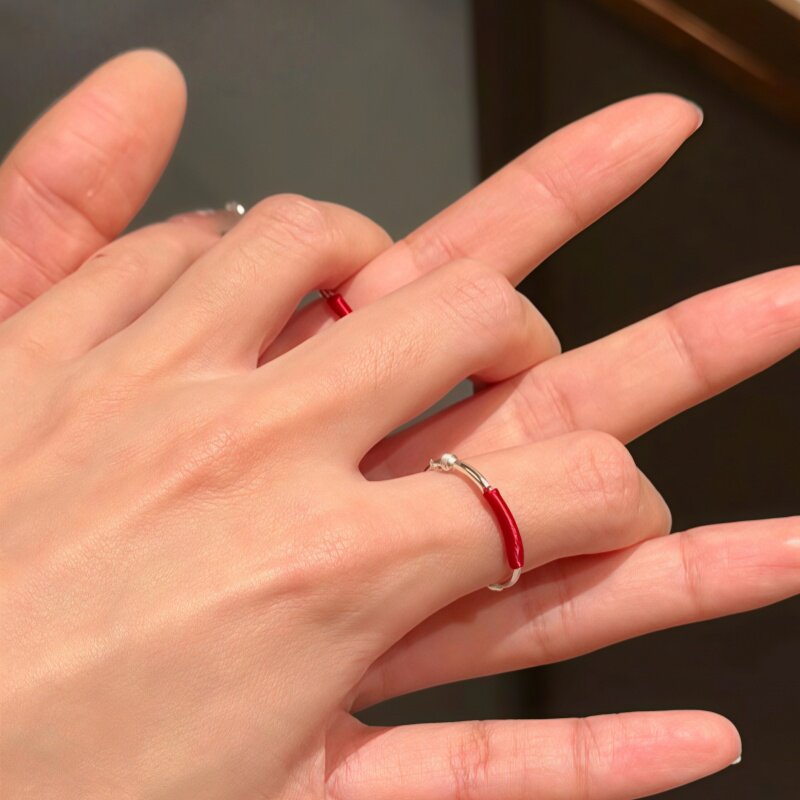 红线鸢戒指女红绳编织缠绕戒指素圈小众设计情侣指环简约百搭饰品