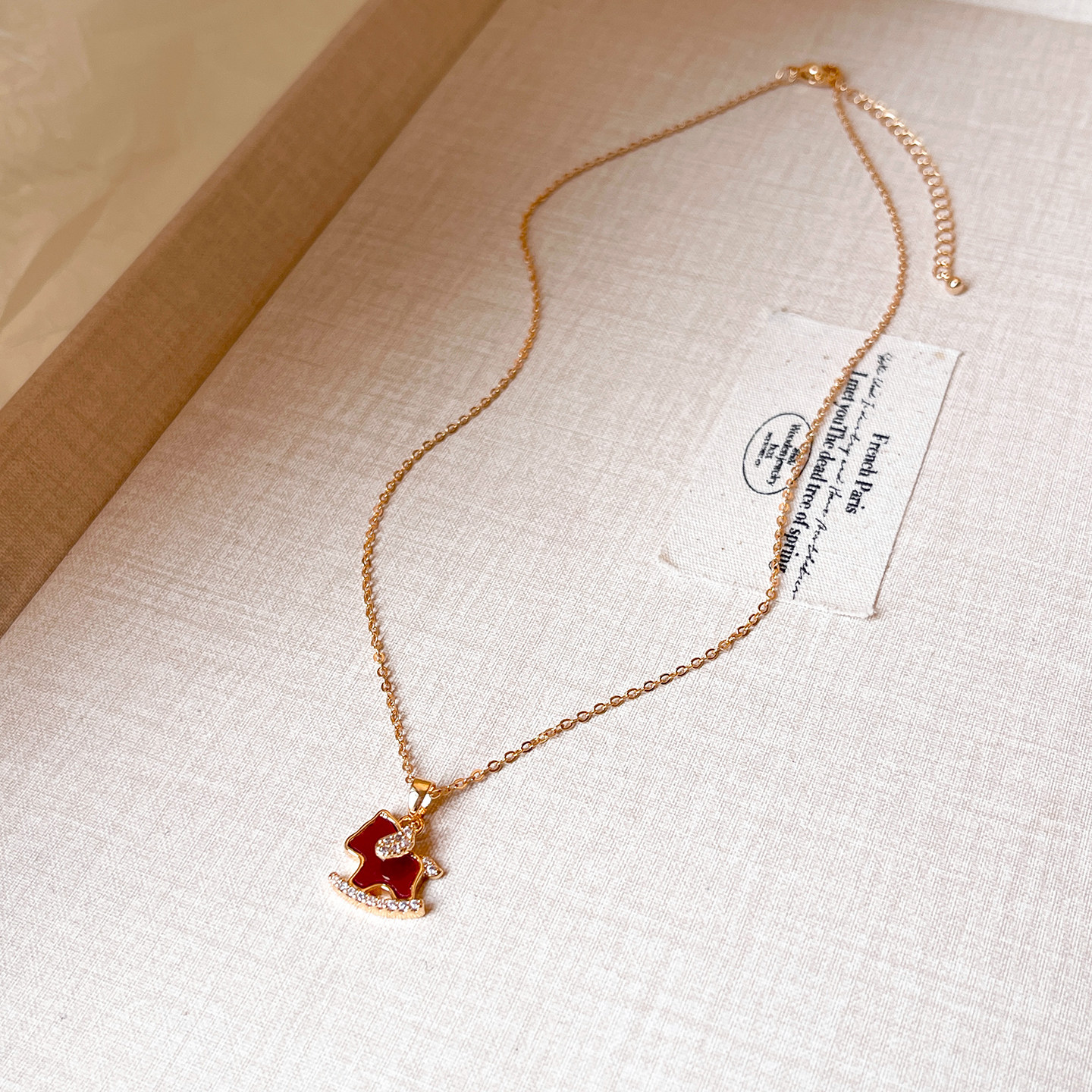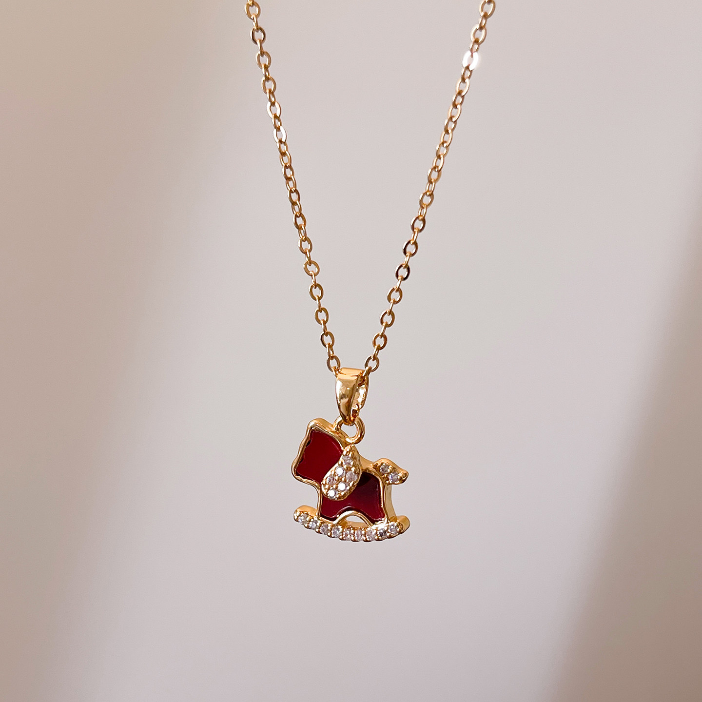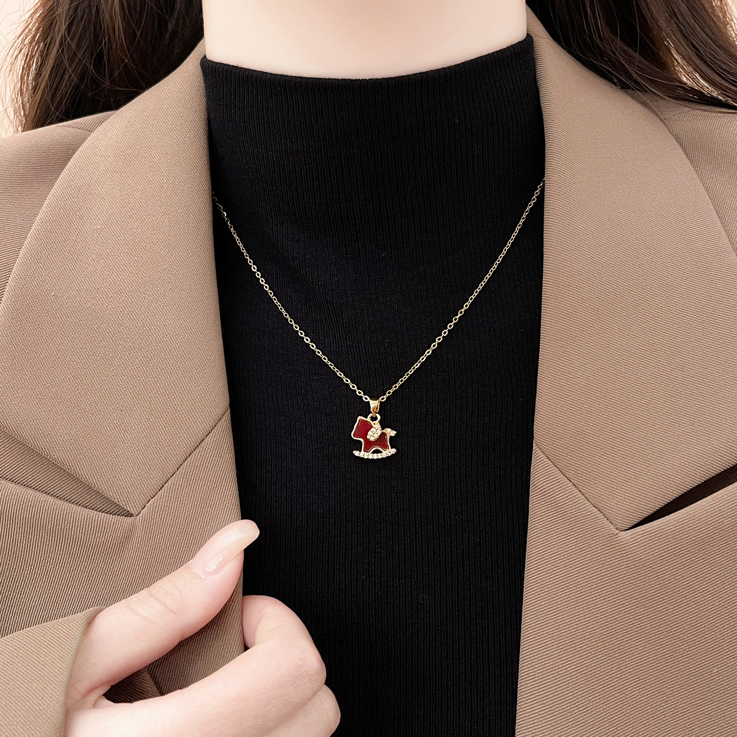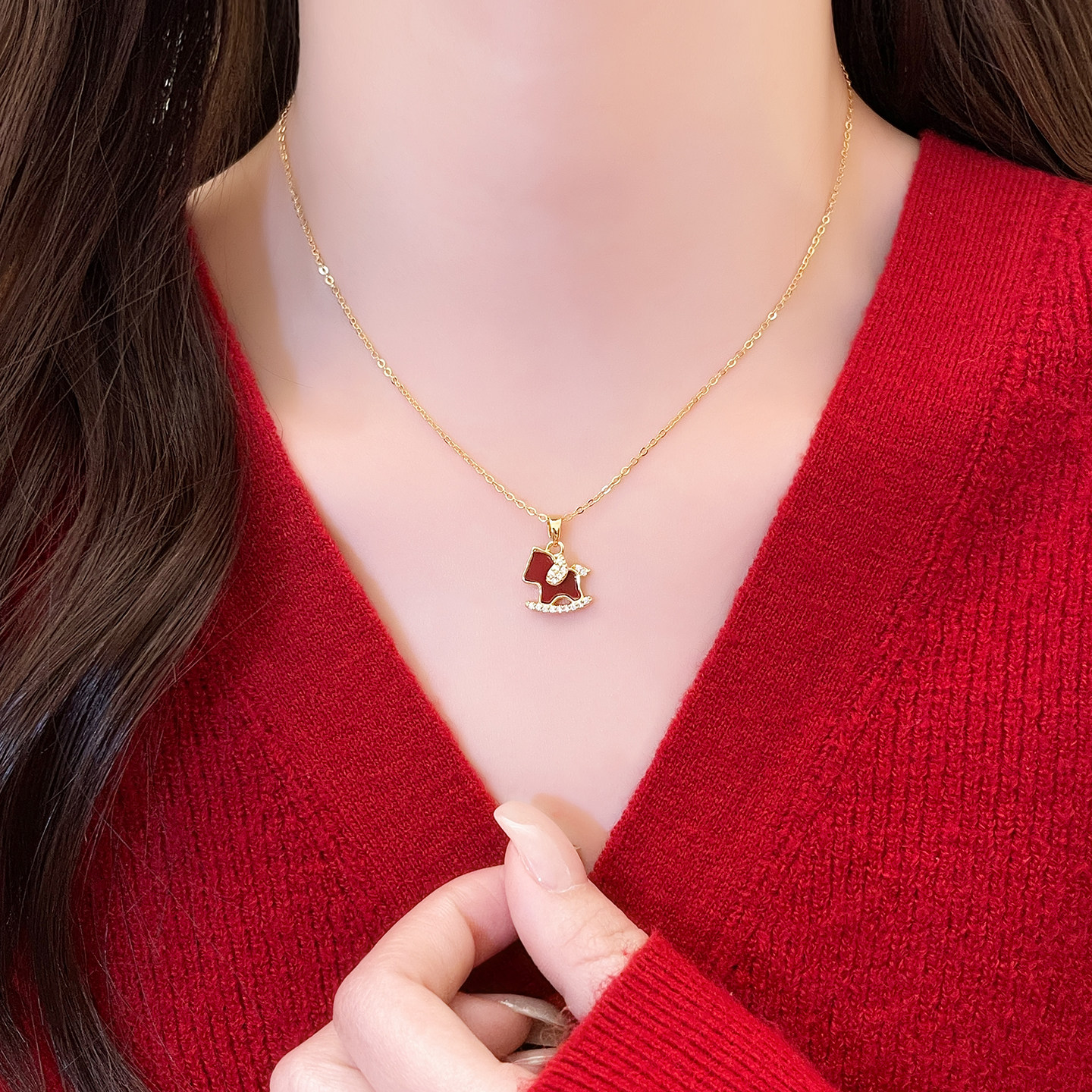 红色小马吊坠项链女高级感轻奢小众配饰品2026新款马上有钱毛衣链