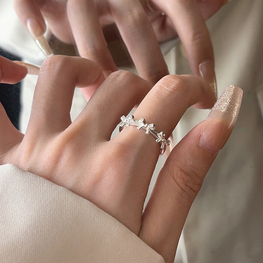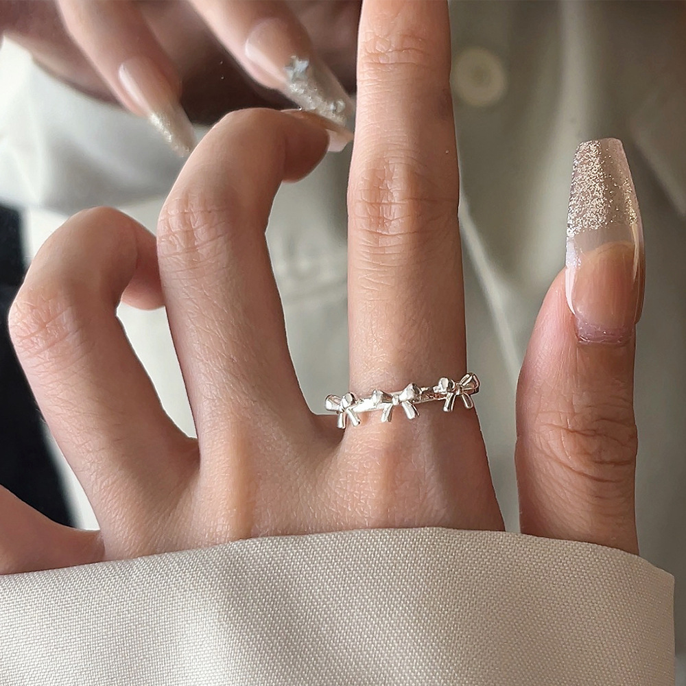 【两件包邮】飘带蝴蝶结戒指女简约几何线条百搭叠戴开口指环ins