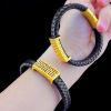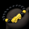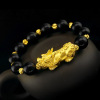 越南沙金貔貅珠子手链男情侣转运珠金店同款金色烧蓝黑曜石手串