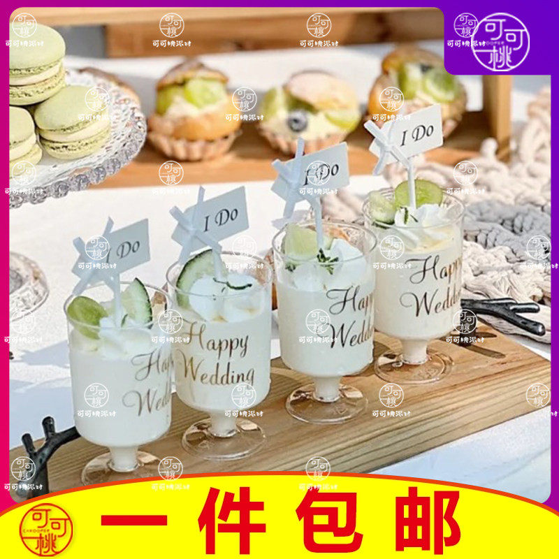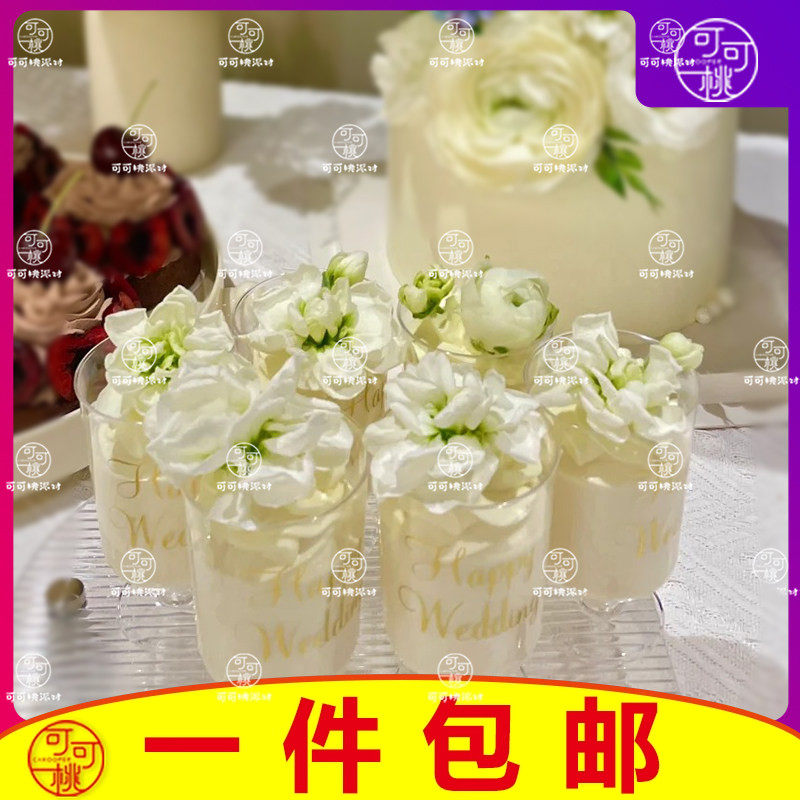 白色系婚礼甜品台装饰纸杯金叶小花插件蛋糕摆件结婚订婚森系主题