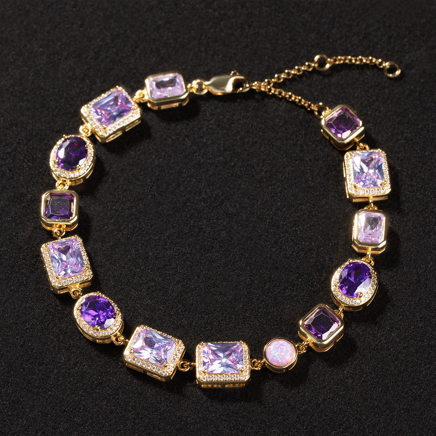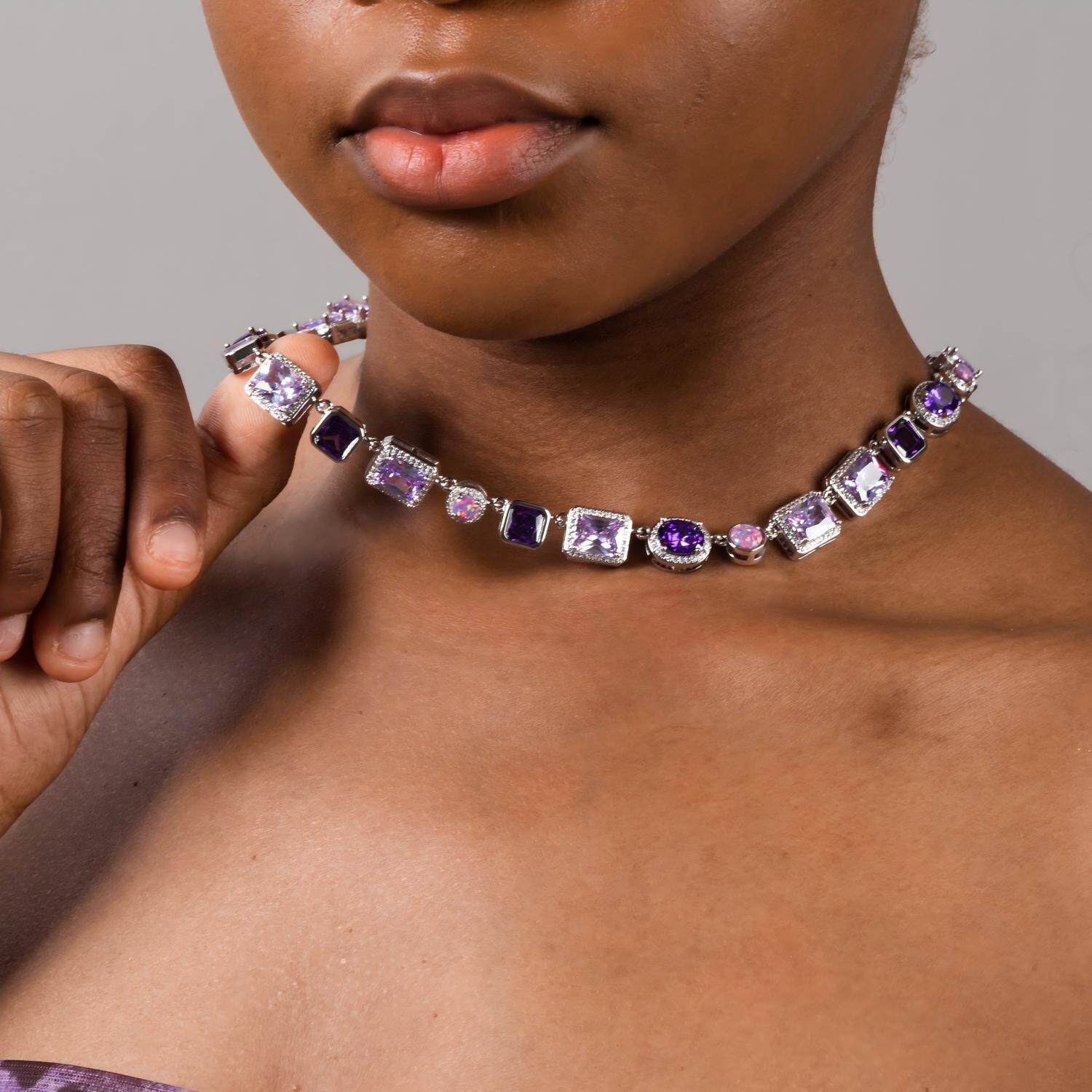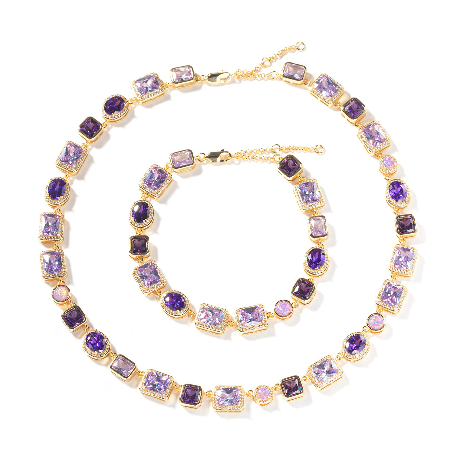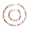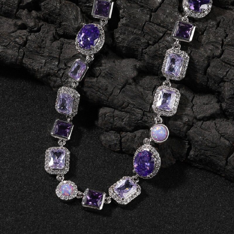 时尚轻奢高级感手链10mm几何型铜镶紫色宝石项链男女嘻哈潮流饰品