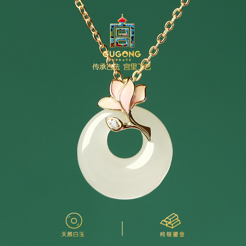 宫里上新平安扣吊坠女款和田玉项链纯银玉石颈链生日礼物送妈妈