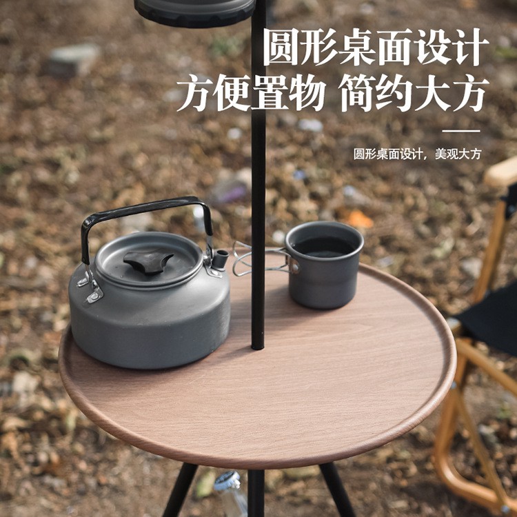 户外小圆桌铝合金折叠小桌子露营可升降摩旅自驾餐桌野营茶桌灯架