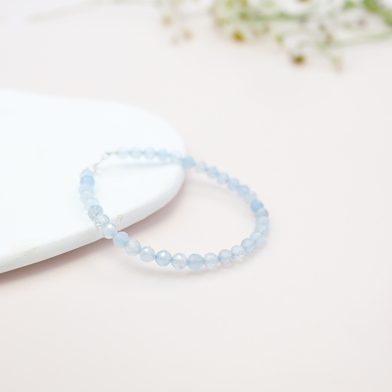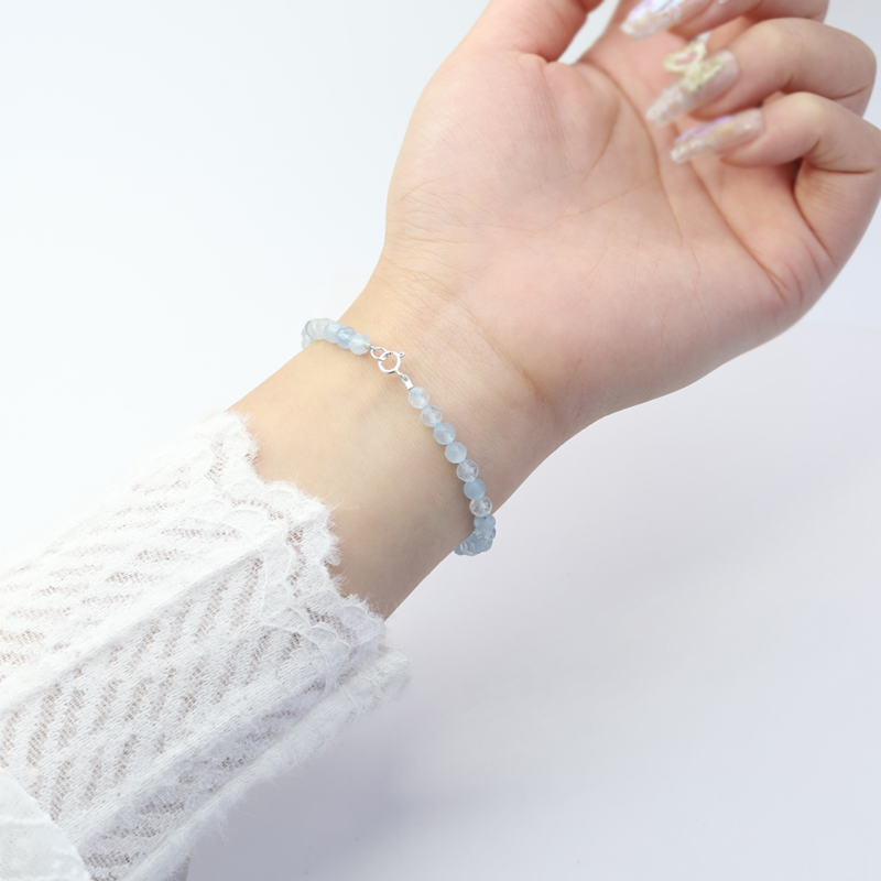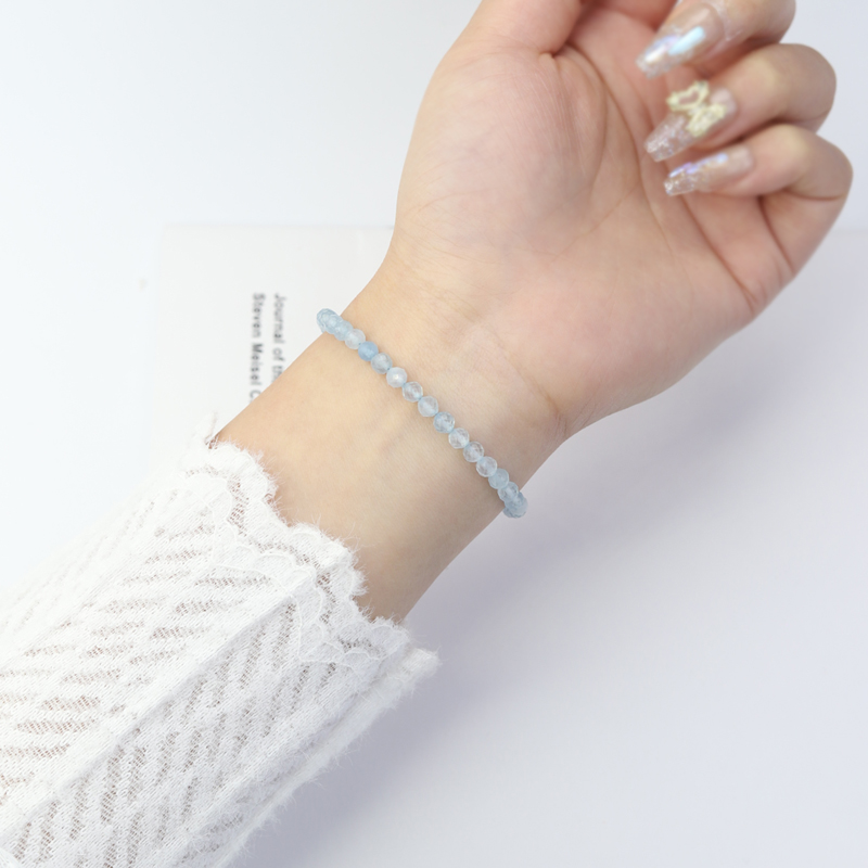 海蓝宝手串天然水晶细手链单圈叠带女款精致小众夏季3mm简约手环