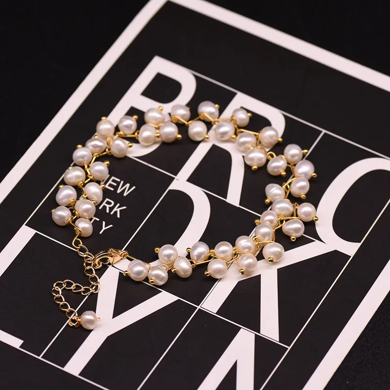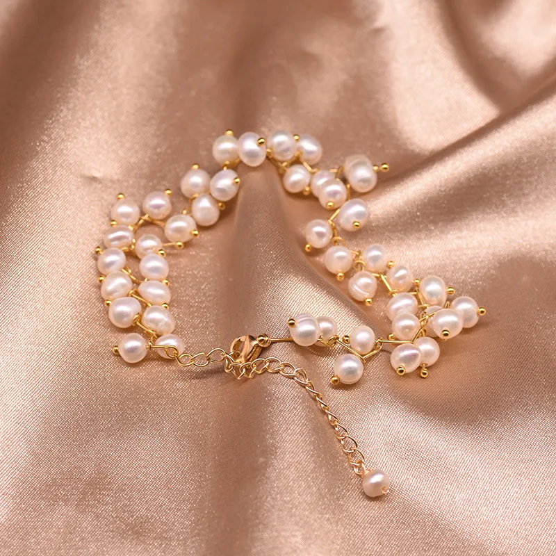 2024新款时尚淡水粉色紫色珍珠手链女气质轻奢简约百搭手串首饰品