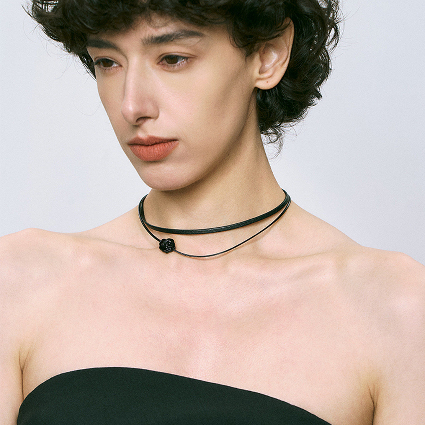 玫瑰花双层黑色PU皮绳项链女小众设计高级感简约百搭皮革锁骨颈链