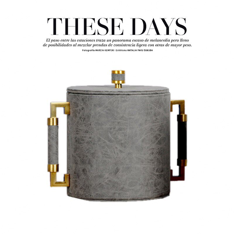 新古典轻奢样板房卧室橙色首饰盒书房橘色皮质金属圆柱灰色收纳桶