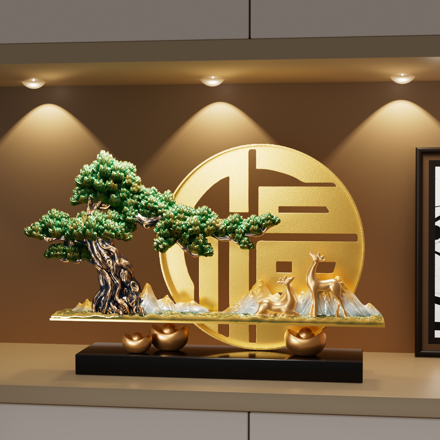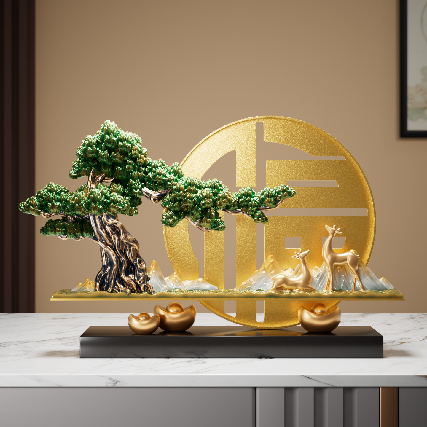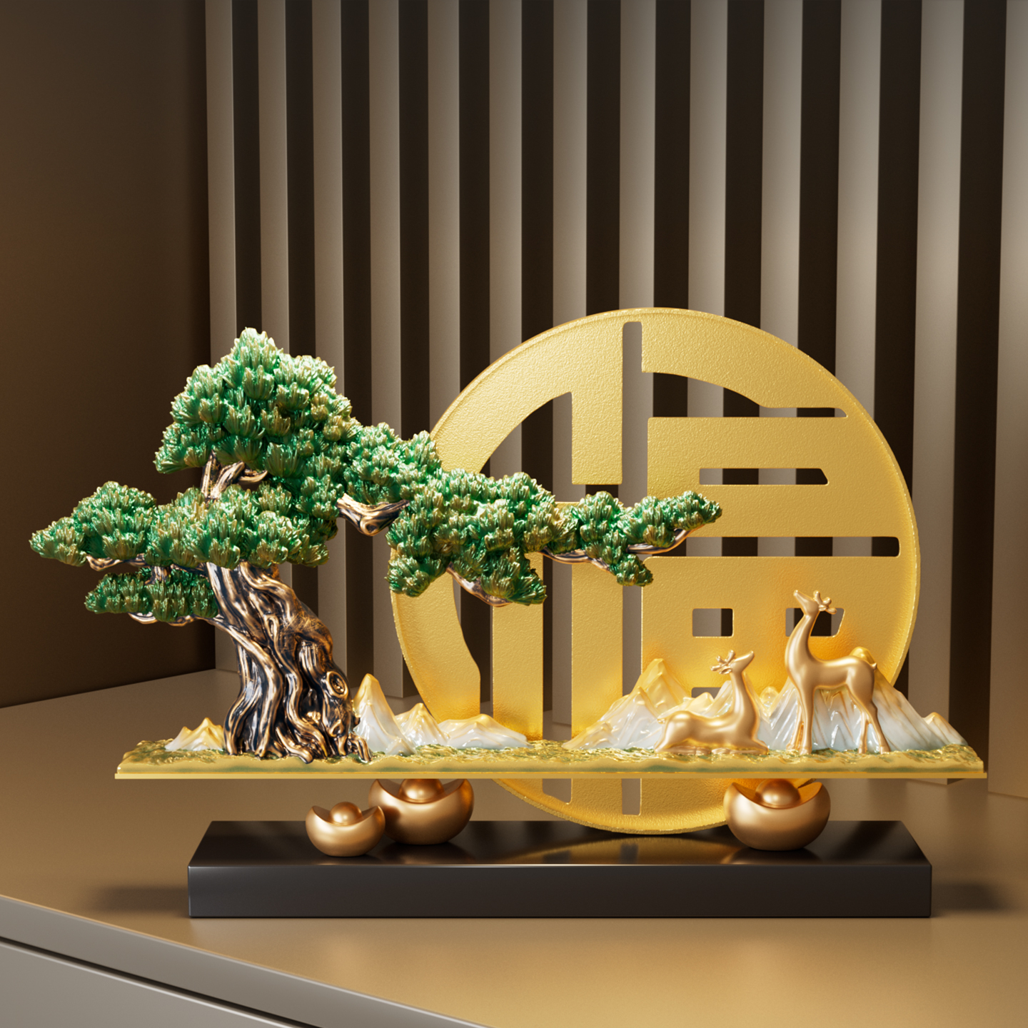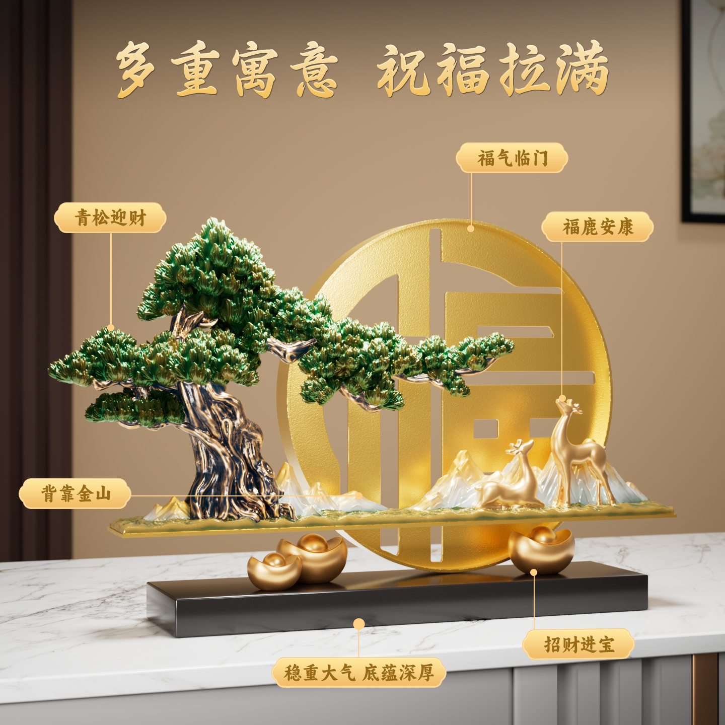 福字迎客松摆件客厅招财电视柜酒柜装饰品搬家礼物乔迁新居礼品