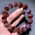 天然橙色草莓晶三圈手链老矿嫩色桃花粉晶水晶手串饰品礼物情侣女