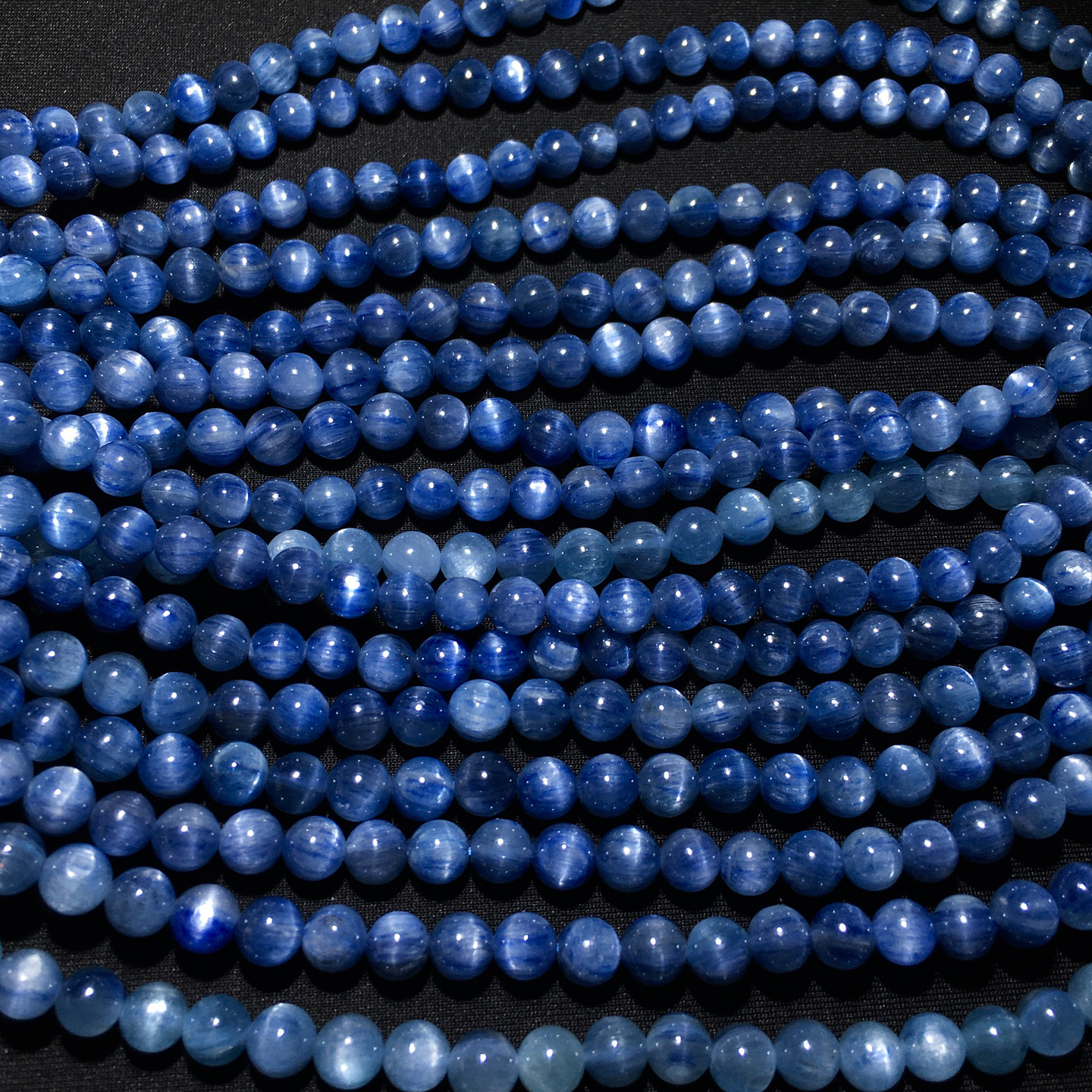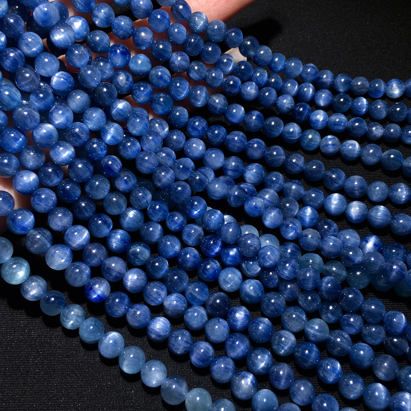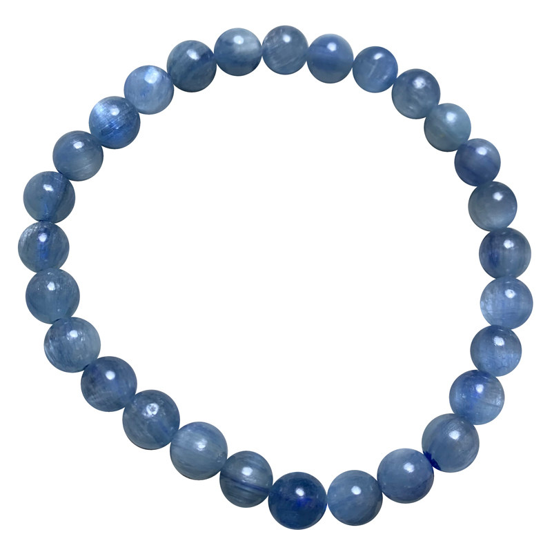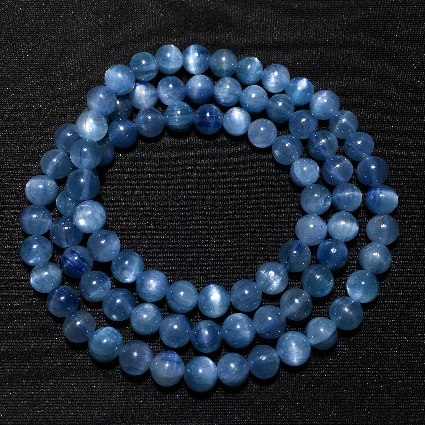 天然猫眼蓝晶石三圈手链共生矿物蓝绿色手串蓝宝石饰品情侣礼物女