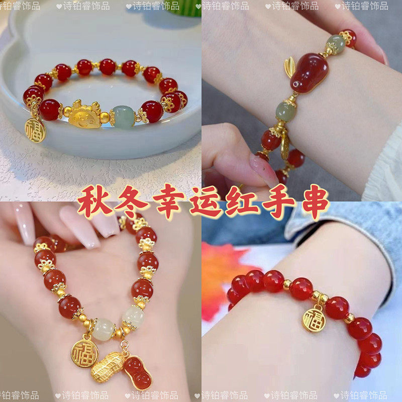红色玻璃手串单圈简约百搭手链女时尚个性配饰日常通勤穿搭饰品