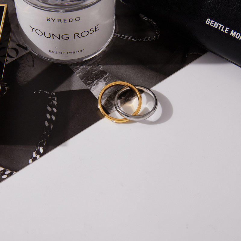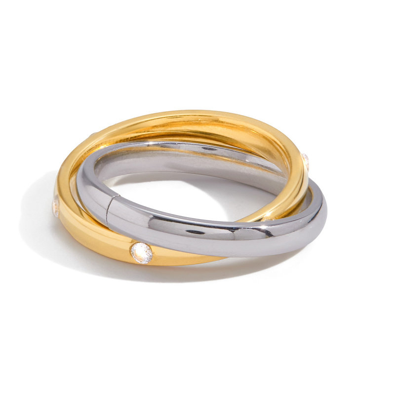 欧美跨境锆石拼色交叉双环可活动戒指钛钢饰品高级感时尚高端首饰