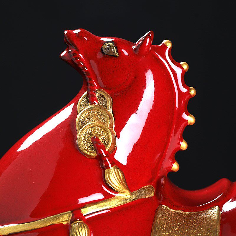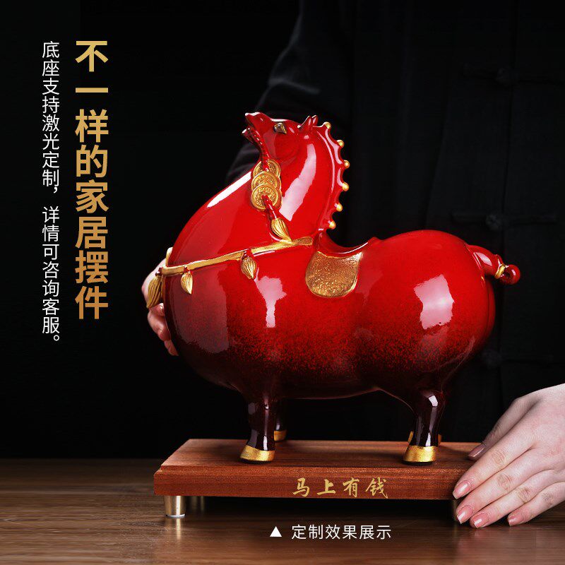 东方泥土陶瓷《马上有钱》描金骏马室客厅博古架高装饰