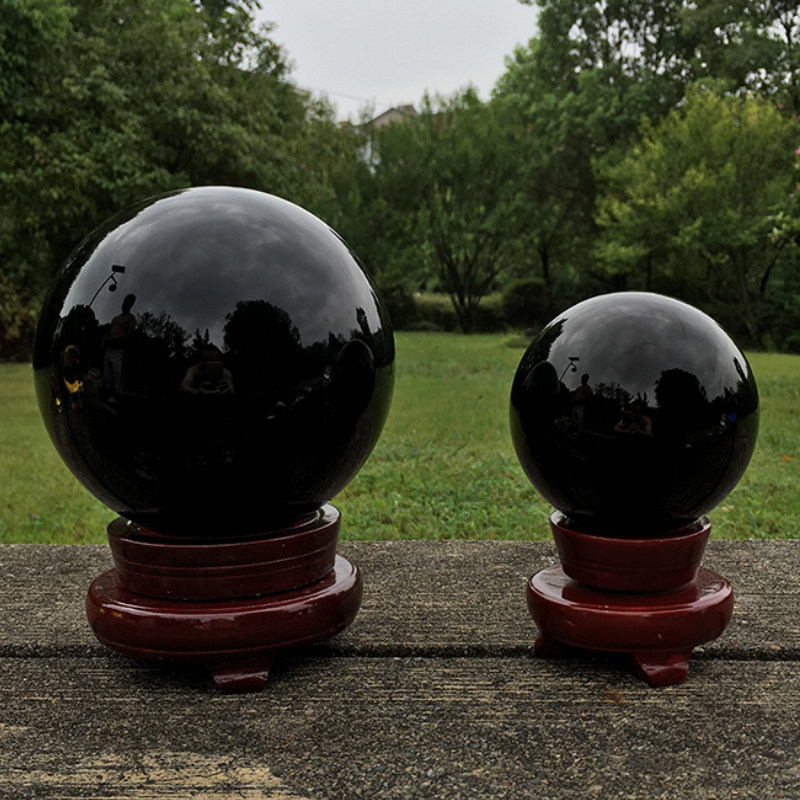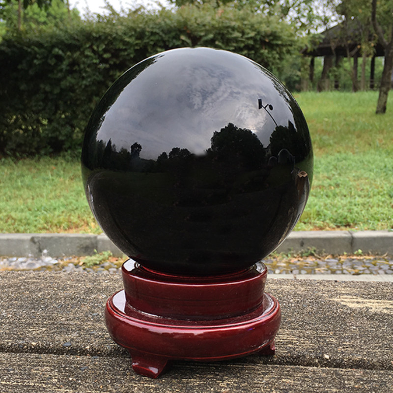 人造K9黑色玻璃风水球客厅书房装饰超大号20CM黑曜石水晶球摆件