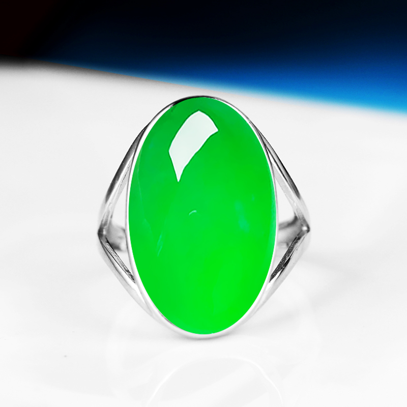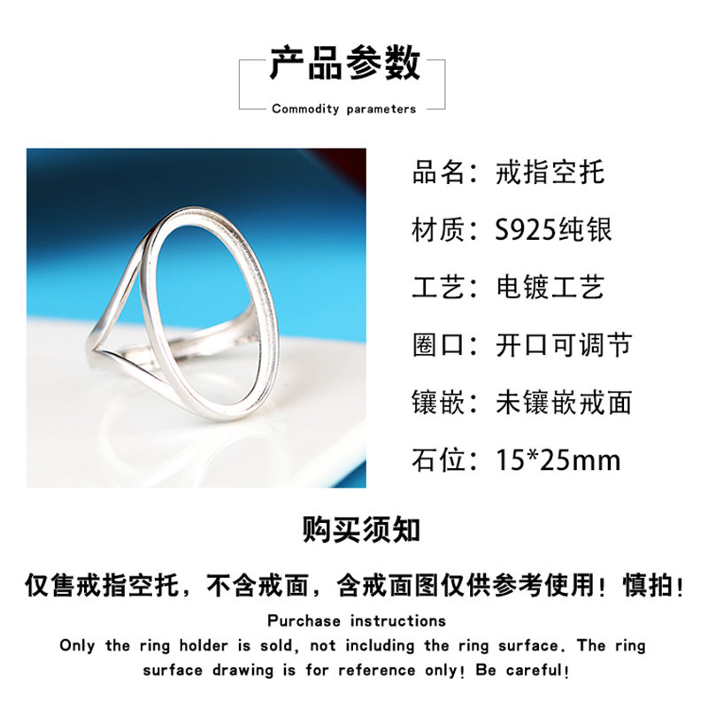 通体S925纯银戒指空托简单款式镶嵌蜜蜡绿松石开口椭圆戒托 15*25