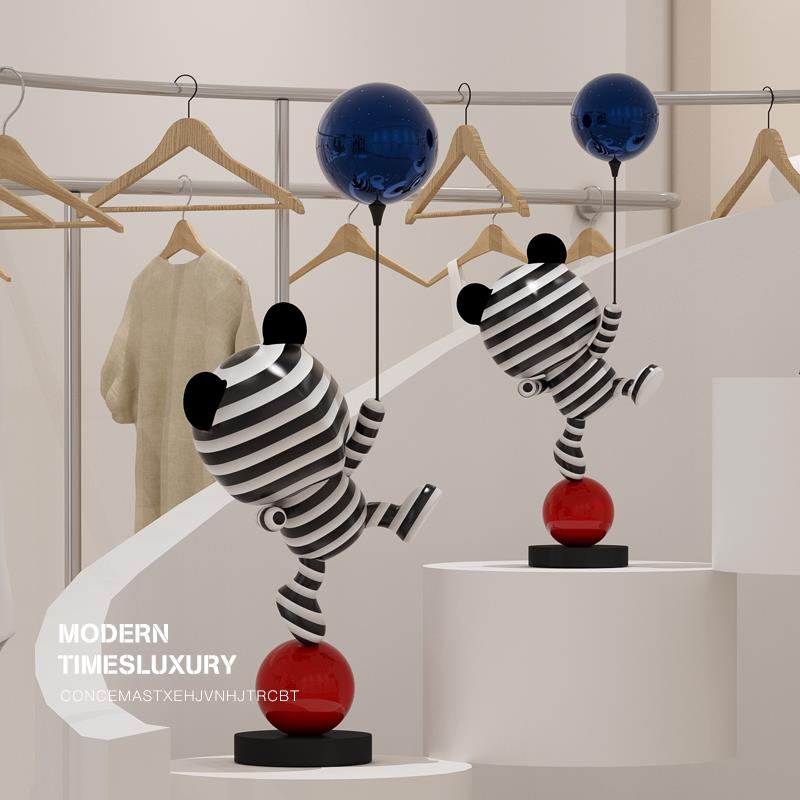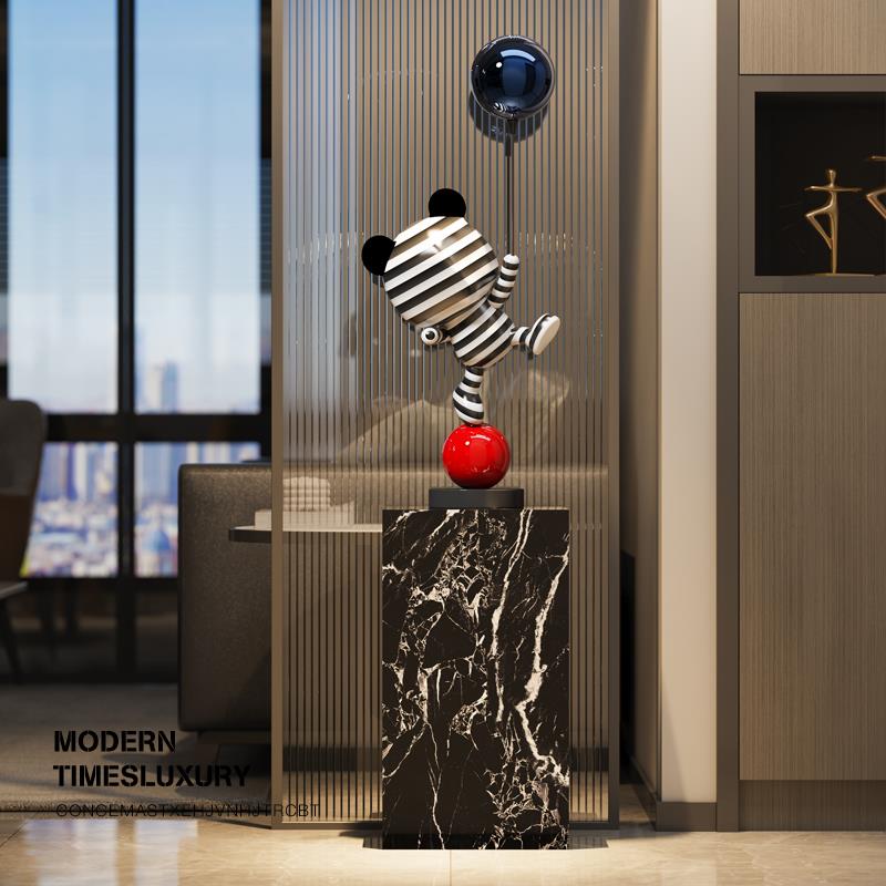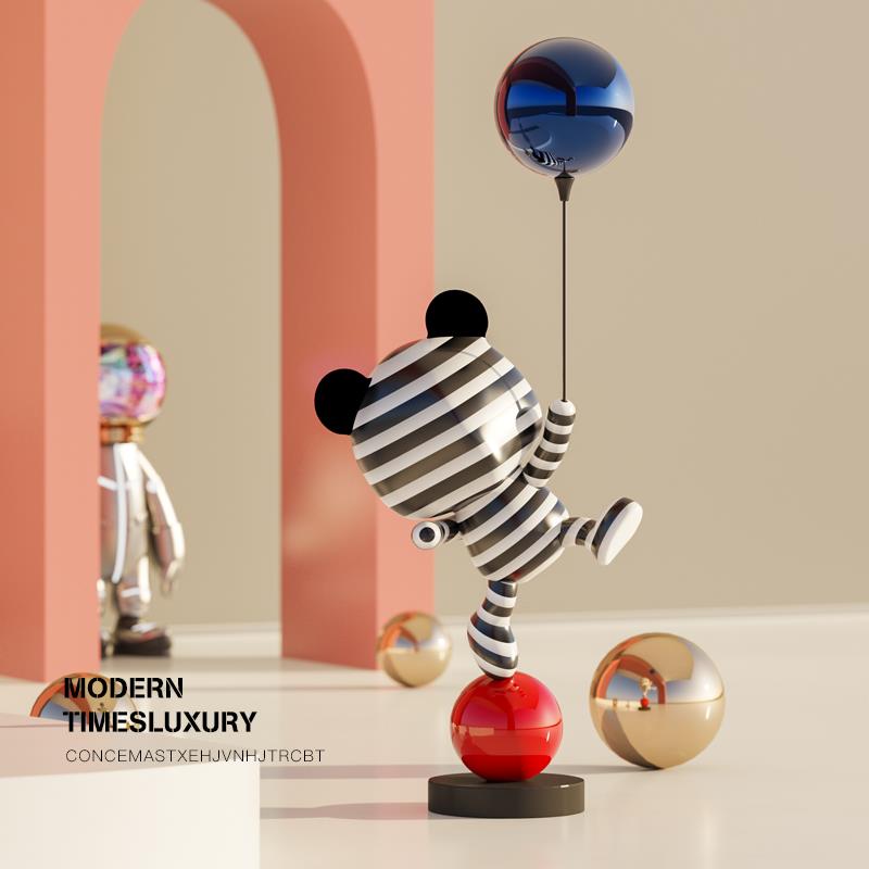 现代创意条纹熊落地摆件卡通熊客厅电视柜旁售楼处玄关沙发装饰品