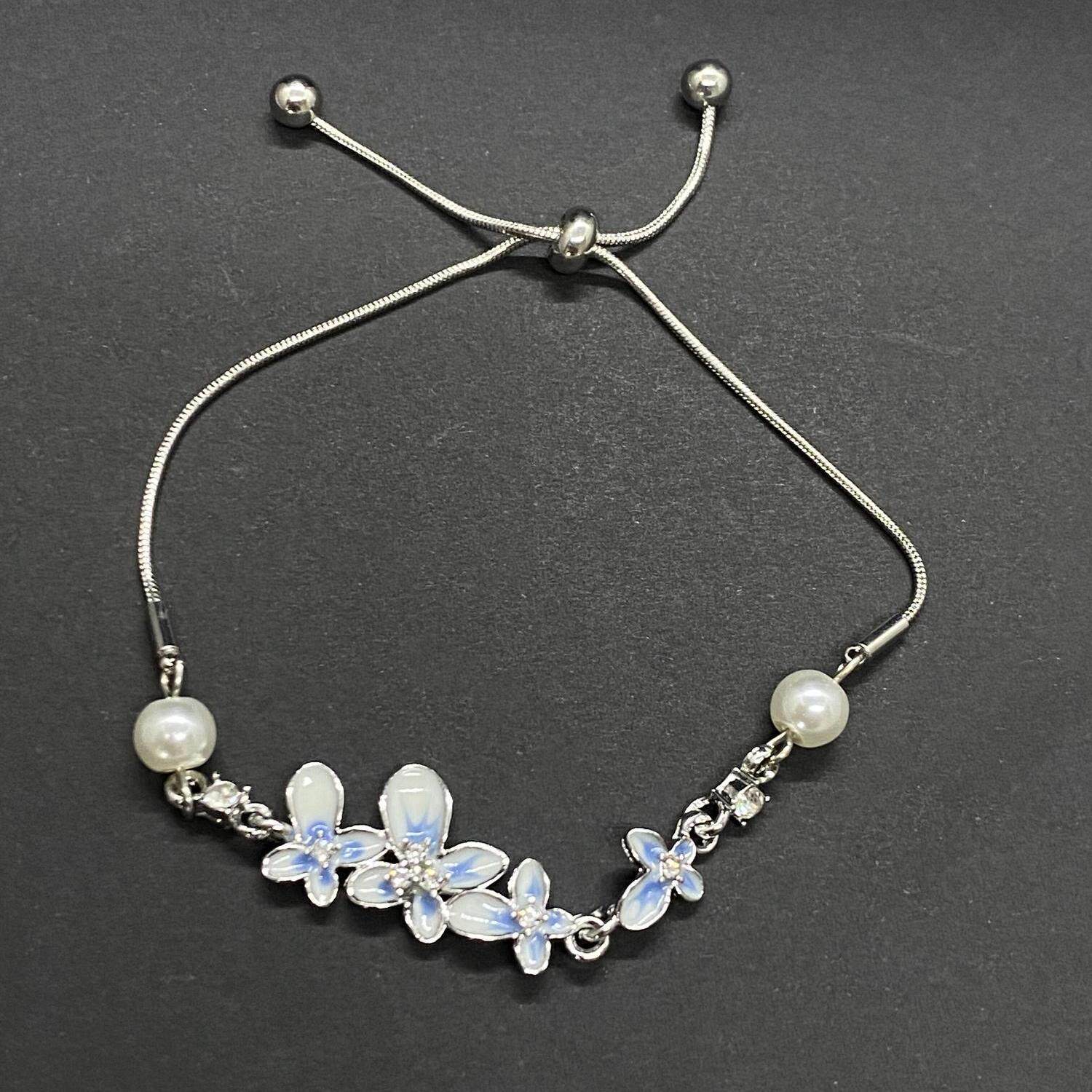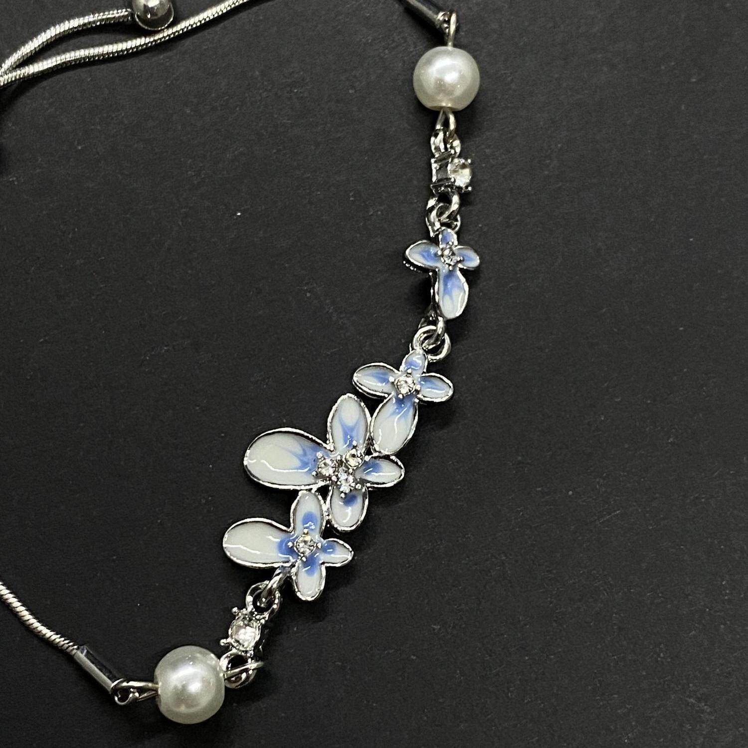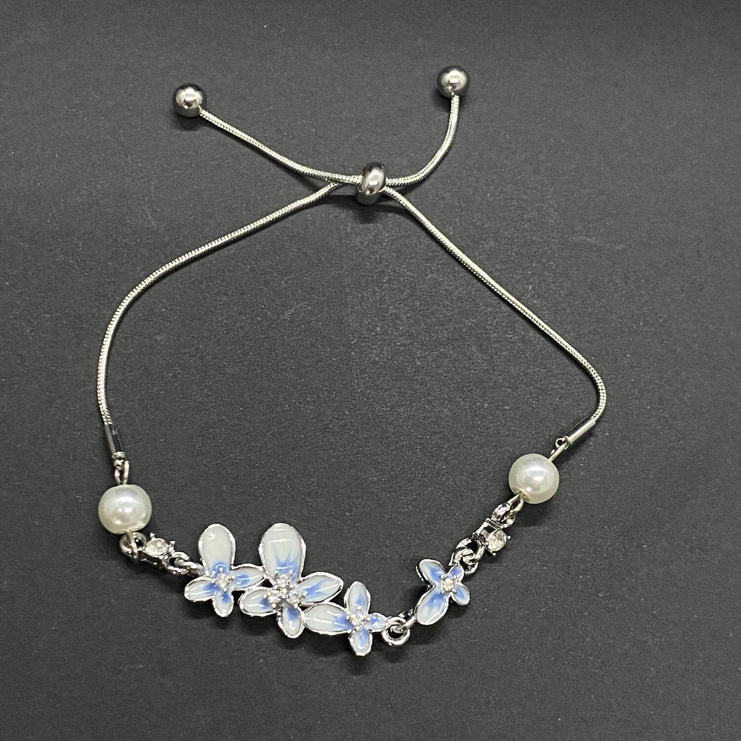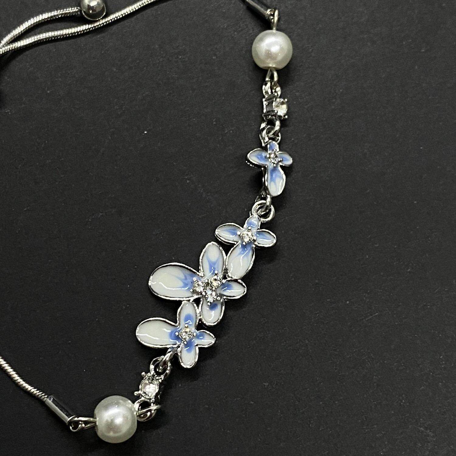 蓝色渐变珐琅花朵手链2025新款可抽拉精致百搭手饰小众设计感手环