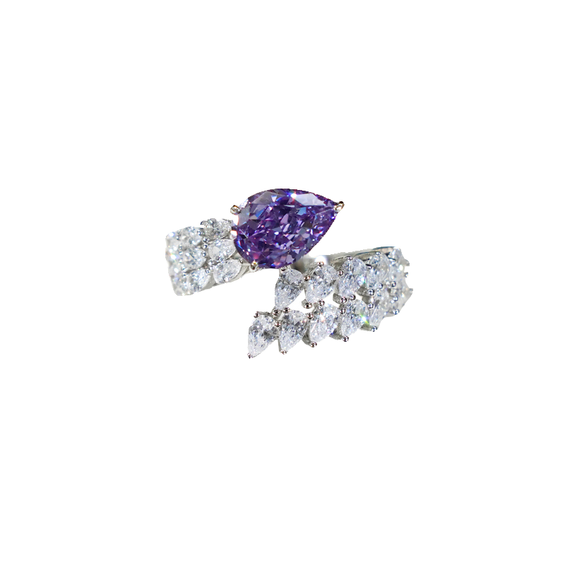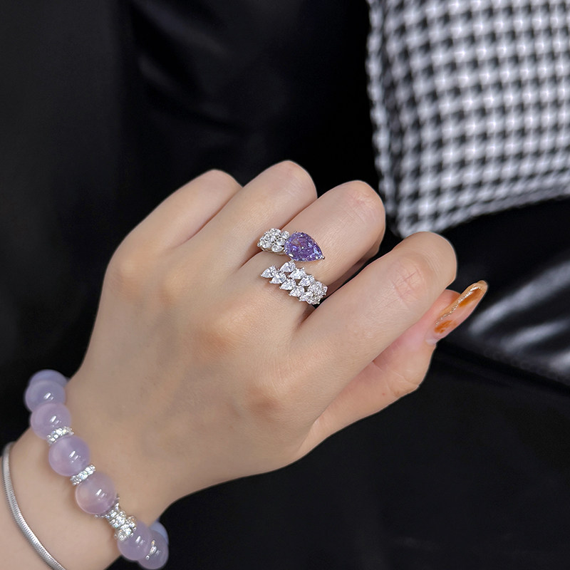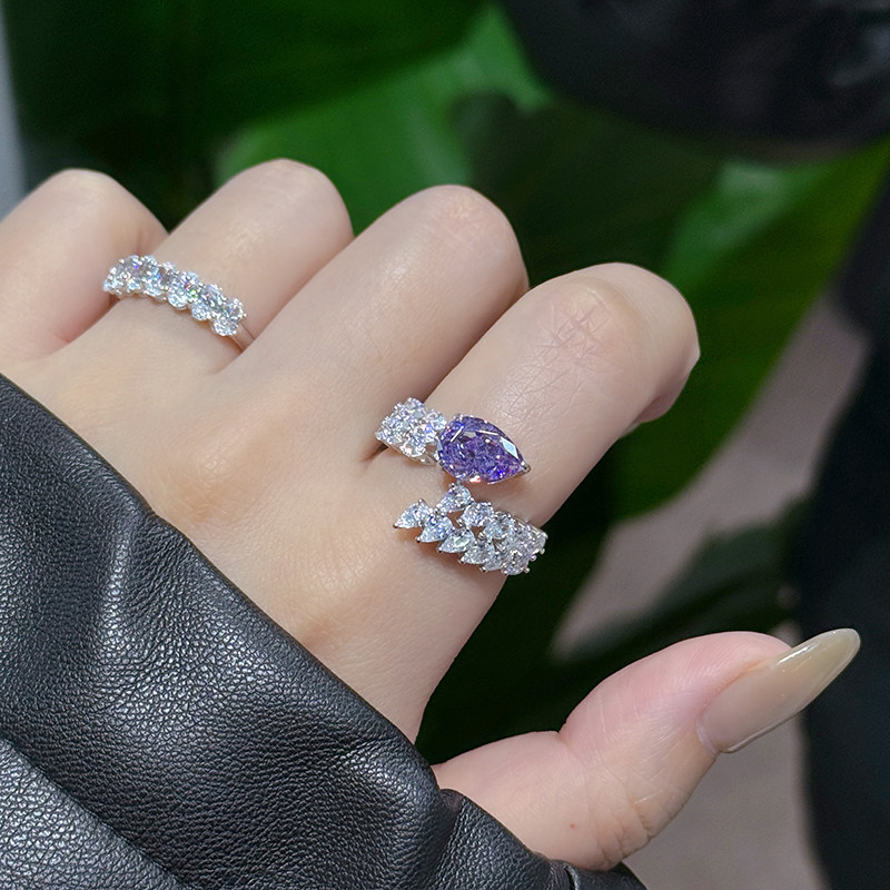 高级感2克拉人工钻石仿真钻戒紫钻戒指水滴形气质镶钻叠戴食指戒