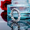 PT950铂金美国进口D色莫桑石群镶满钻爱心排戒纯银奢华心形戒指
