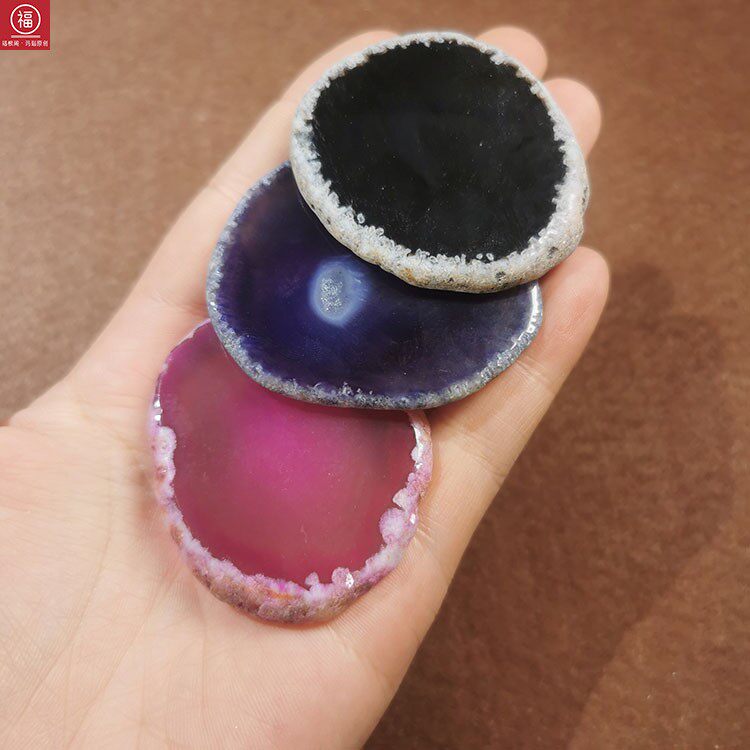 5-6cm天然玛瑙材质 彩色玛瑙片切片盆栽片发财树底座配件风铃片