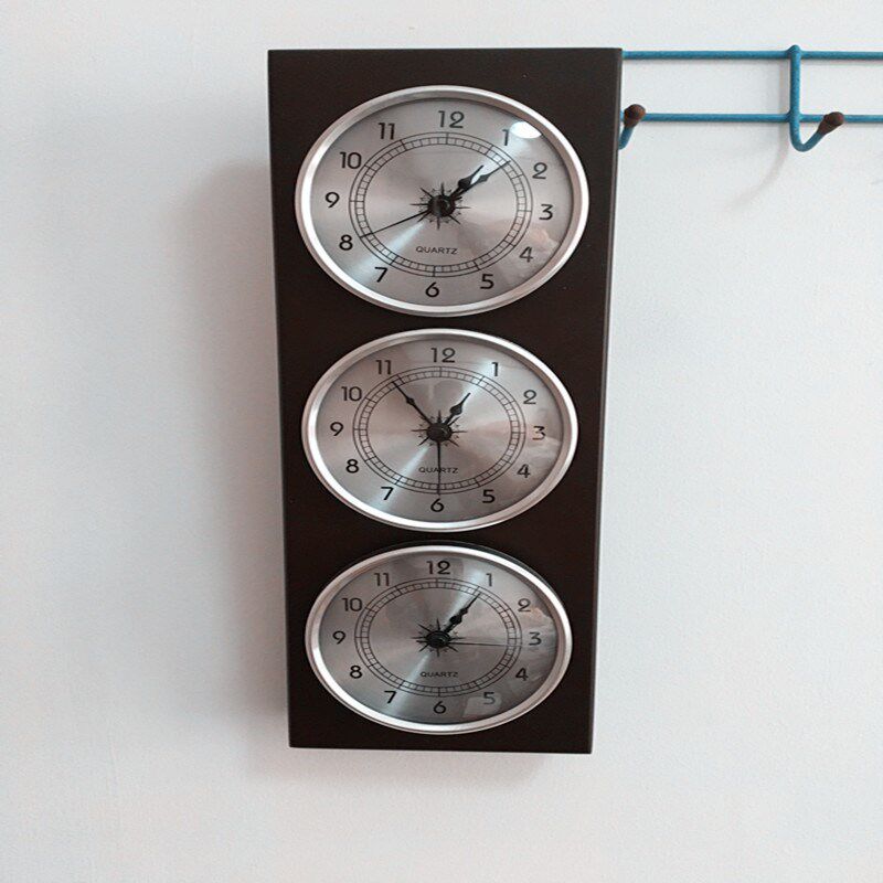温湿度新款气压庭院计钟木表多时区钟表国际时间客厅摆件创意现代