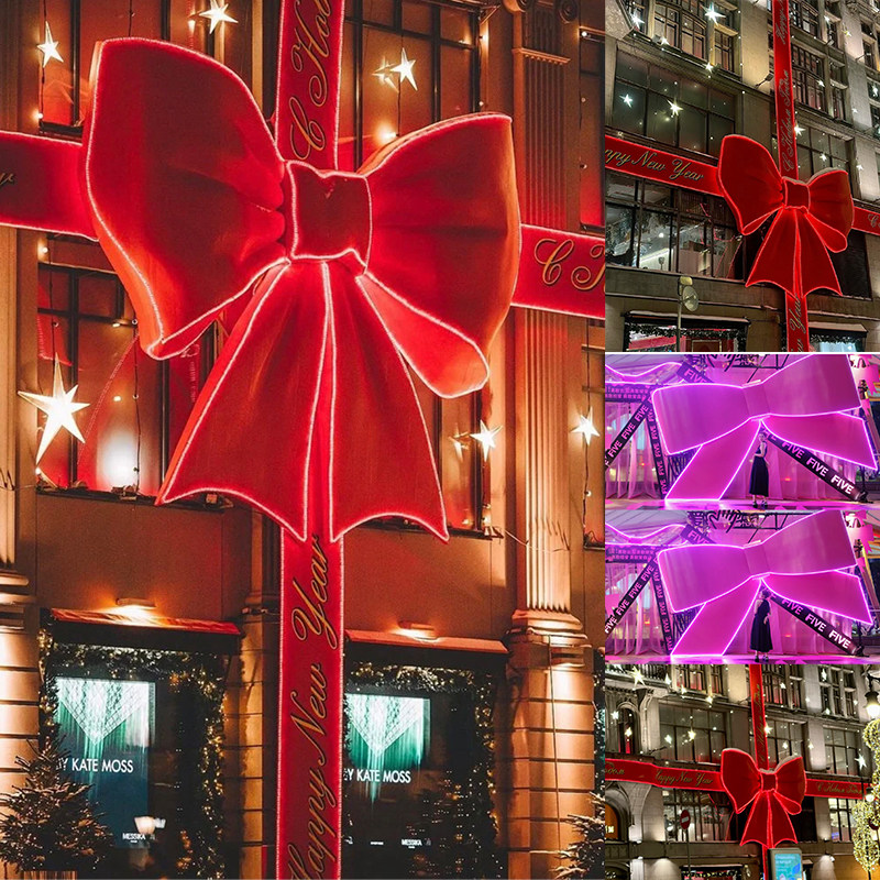 发光蝴蝶结 新年商场陈列橱窗摆件网红打卡龙年节日布置红色装饰