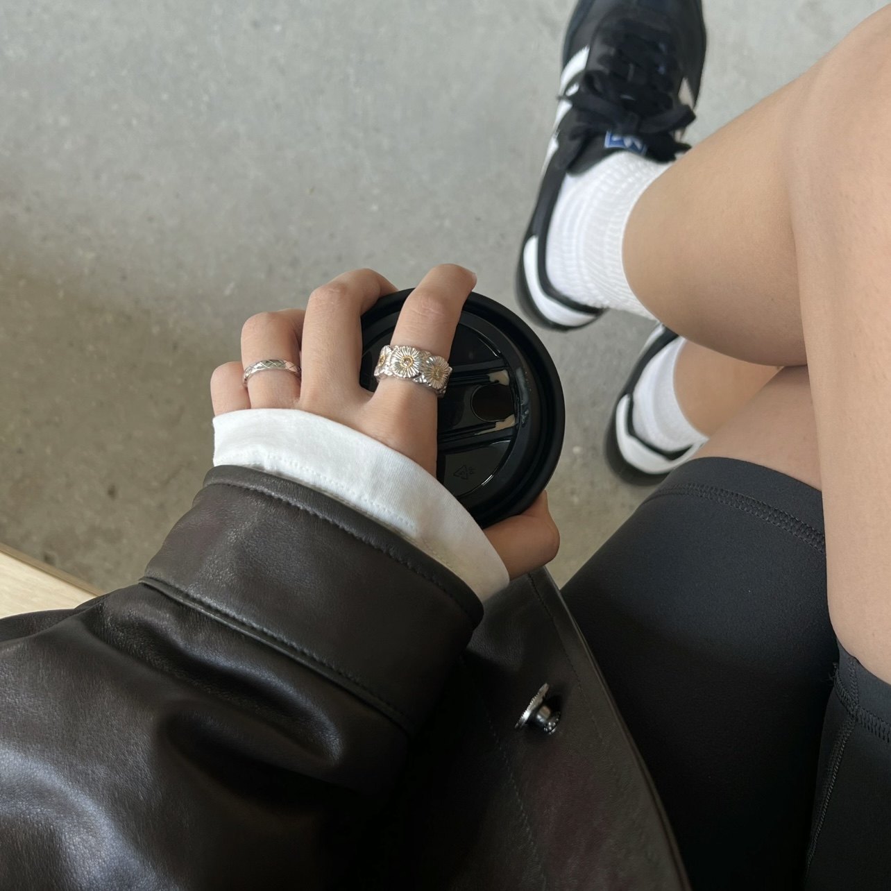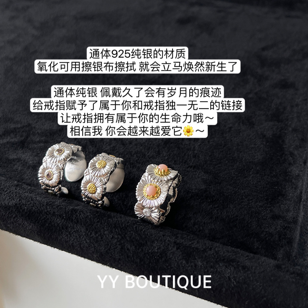 YYBOUTIQU925 纯银小雏菊戒指宝石镶嵌环绕宽版戒指戒指