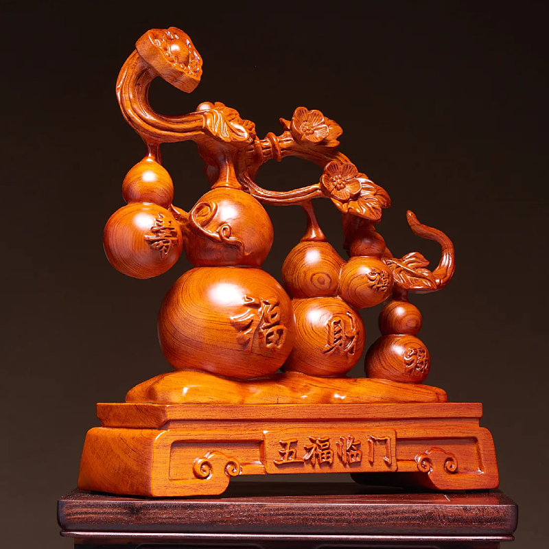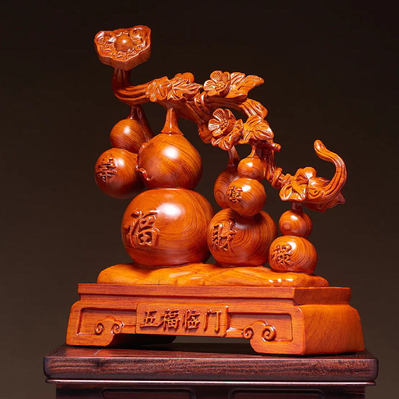 花梨木雕五福临门葫芦摆件实木招财家居客厅玄关装饰乔迁新居礼物