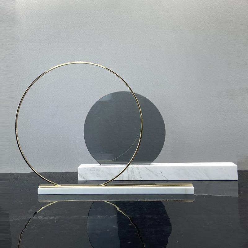 直销新款简约现代灰色玻璃大理石金属圆环屏风摆件样板房售楼处软