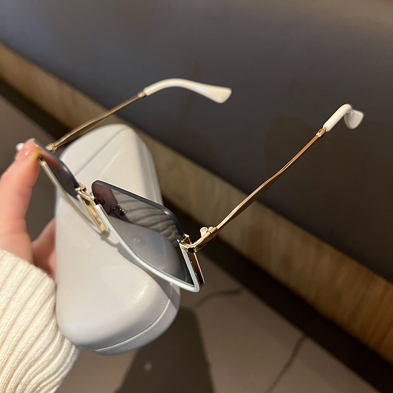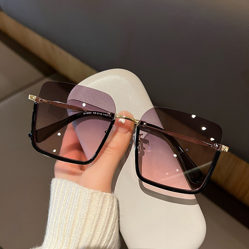 2026年女款黑色半框防晒墨镜方形圆脸显脸瘦防紫外线个性太阳镜潮
