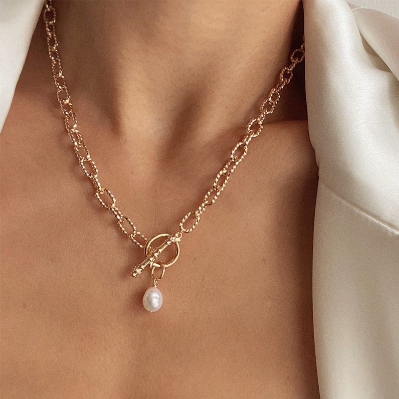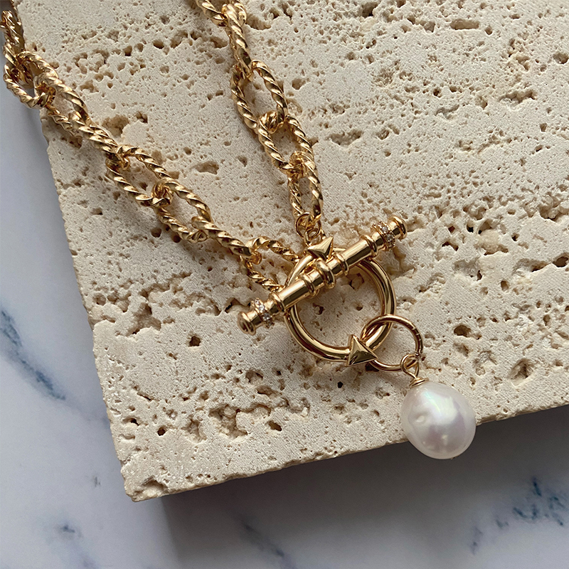 LHWindsor温莎珠宝T字扣项链女巴洛克珍珠吊坠个性镀金毛衣链秋冬