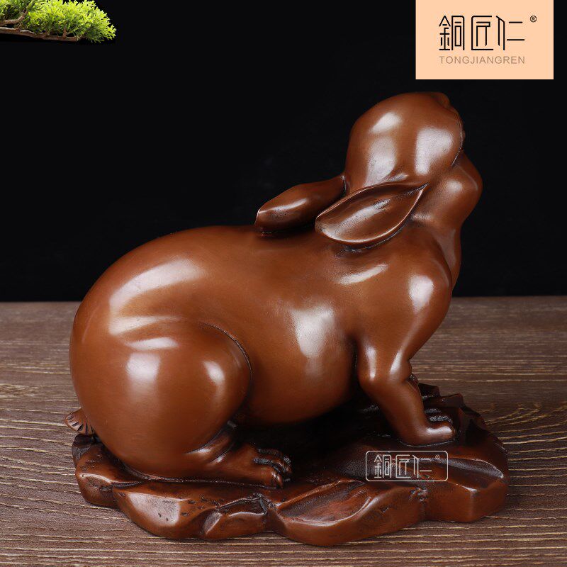 铜匠仁紫铜兔摆件铜十二12生肖兔摆设办公室客厅玄关室内工艺品