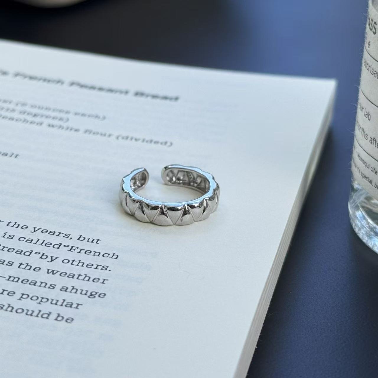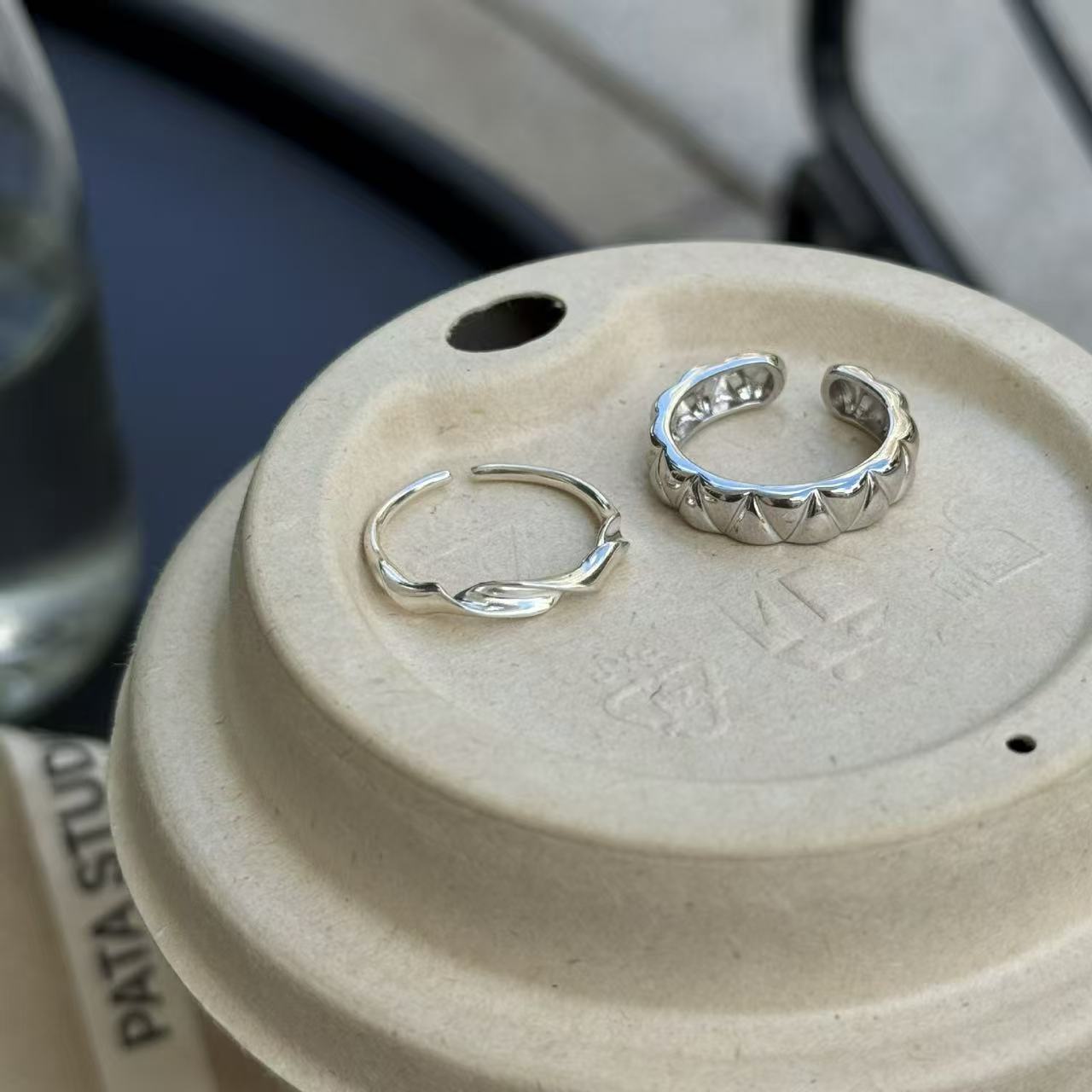 眼观S925银韩版小众设计感时尚风菱形条纹纽带缠绕戒指设计感时尚